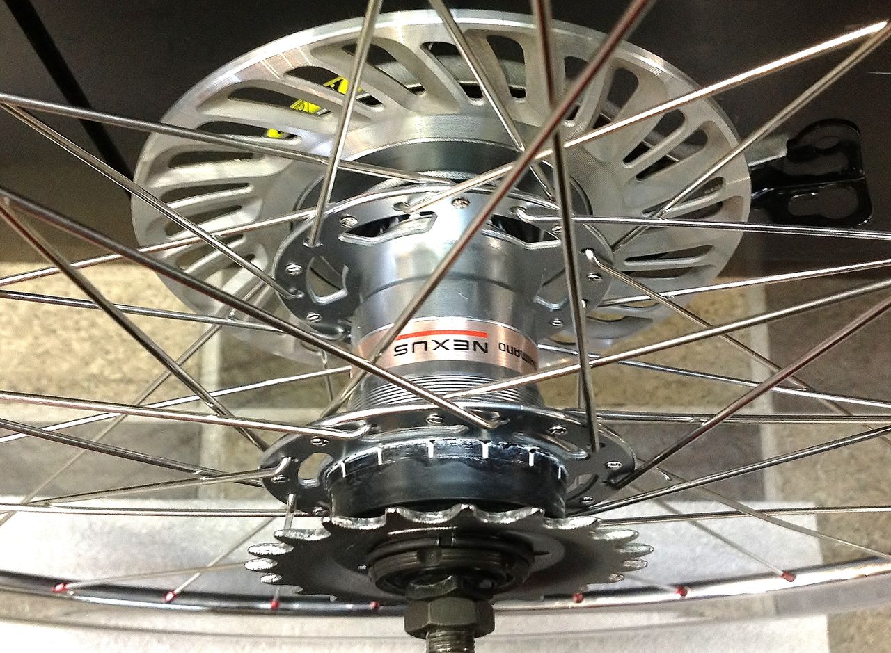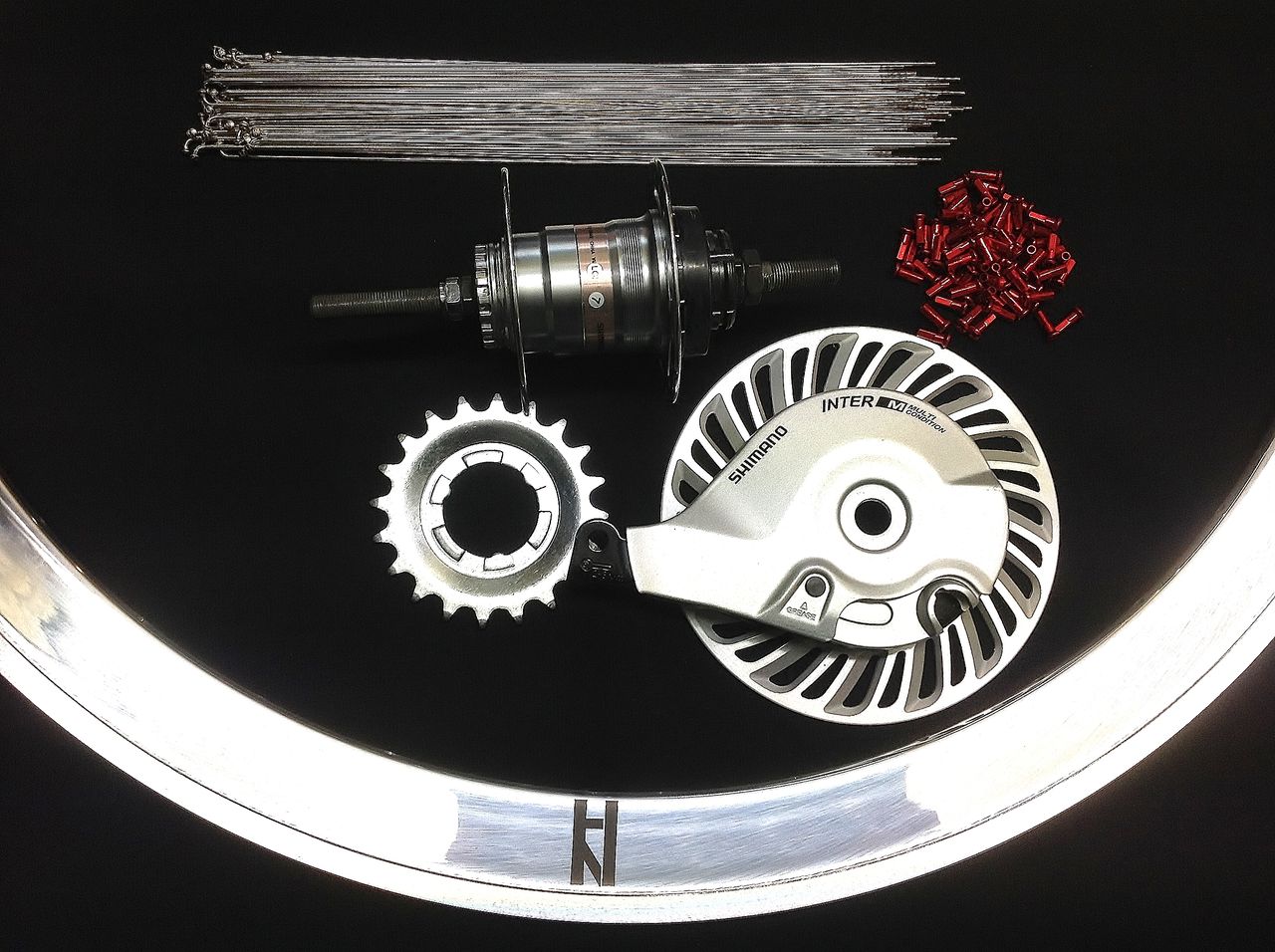 Shimano のカタログによると内装3段ハブで28ホールが存在し、オリジナルのリムで組み替えようと試みたが、在庫がなく入荷予定も未定とのことなので、32ホールでリムもH-PLUS のスーパーライトで組んでみた。