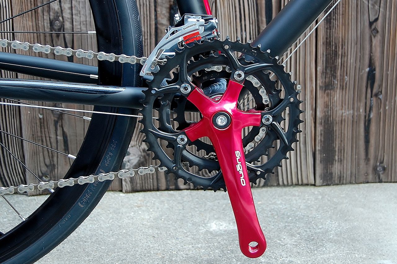 クランクはSugino を採用。28-38-48Tの3枚のチェーンリングを持ち激坂でも走破出来る。