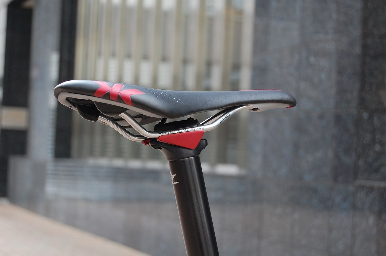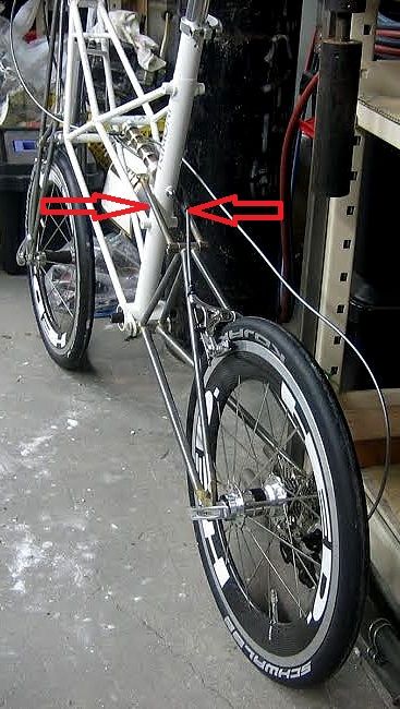 出ました”透明つっかえ棒”。長さが何種類かあって、丁度良いのをクランクのセンターに当ててます。後輪にも転がり防止に1本。雑誌の写真とか、よーく見るとわかるよ。