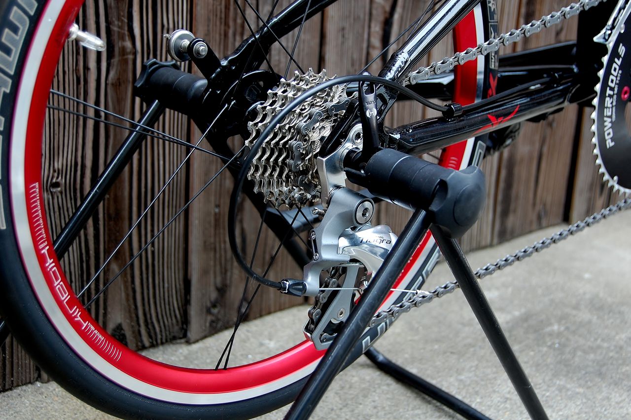さてと、レッドのライン合わせてパーツを選ぶ。高速性重視カスタムてことは、軽量化とフロントダブル化でコンポーネントのアップグレード、それと強い前傾姿勢の取れるポジションが鍵かな。
