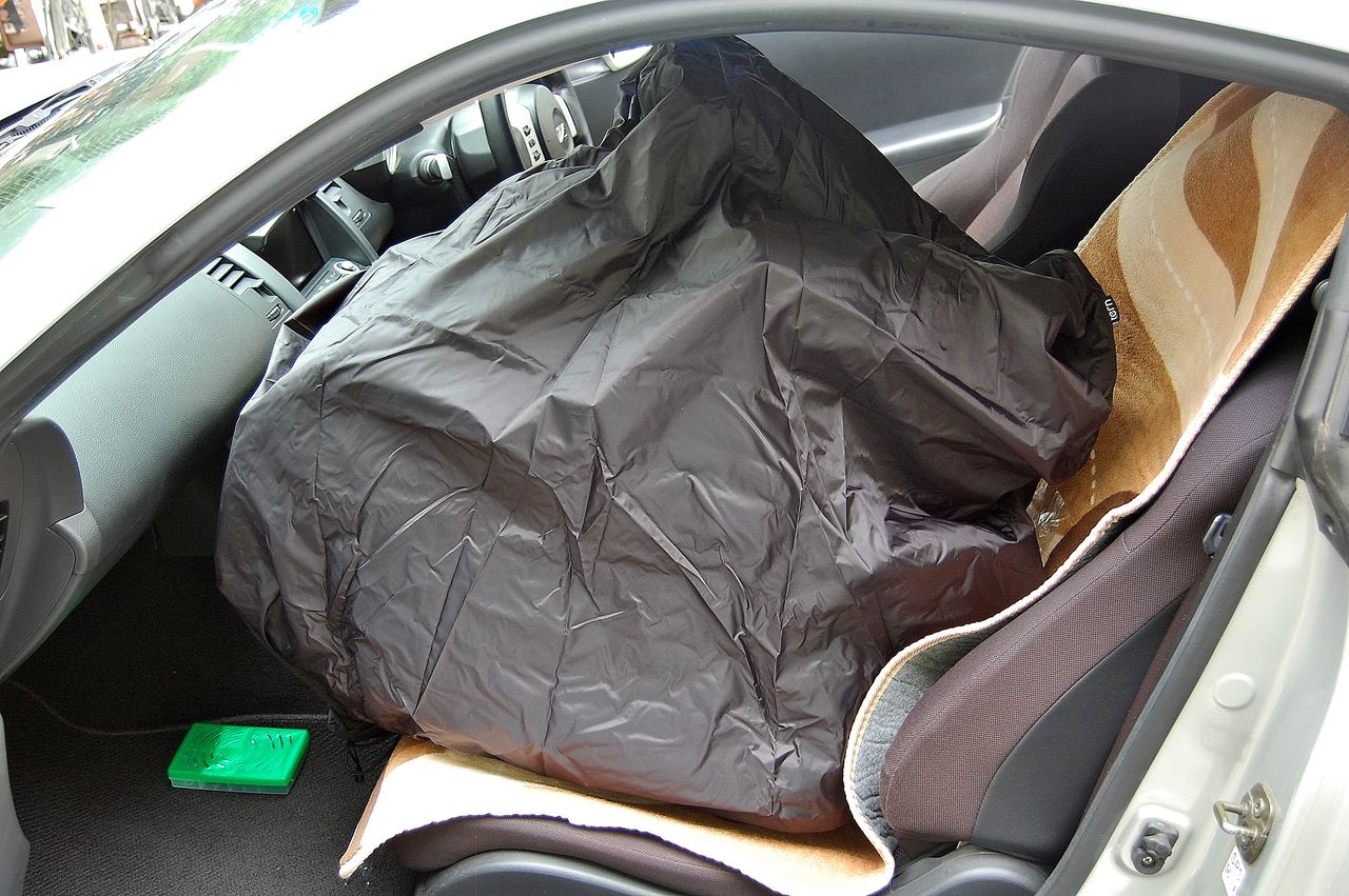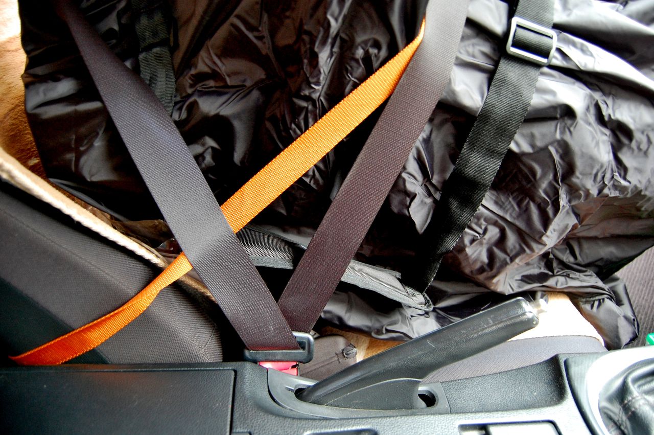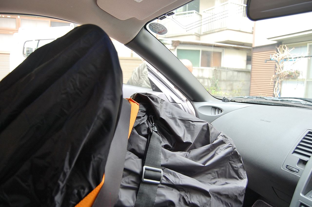 シートベルトで固定です。