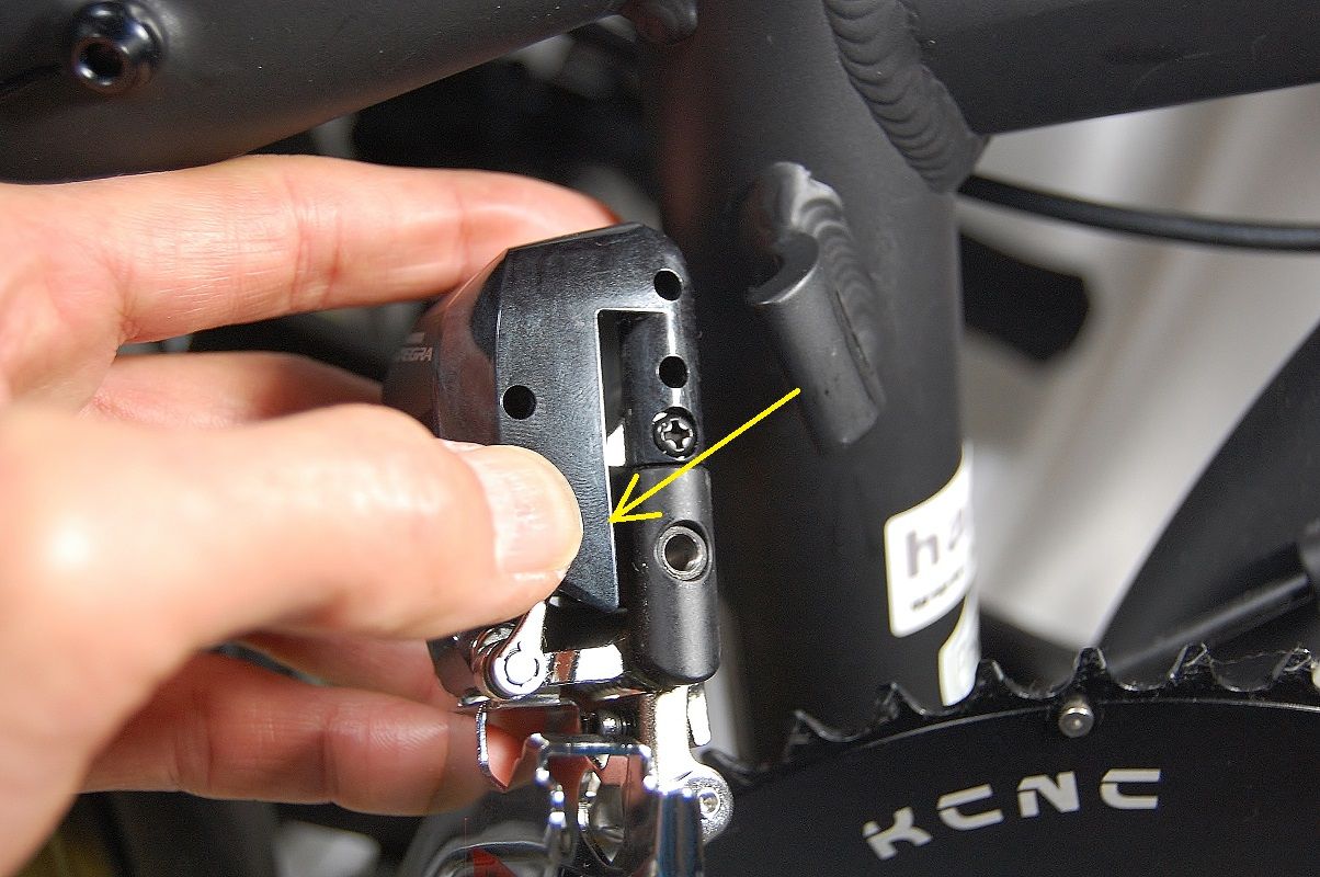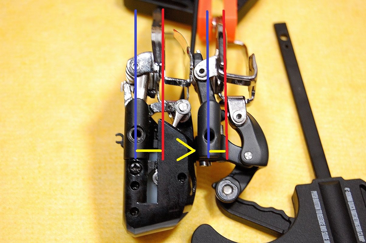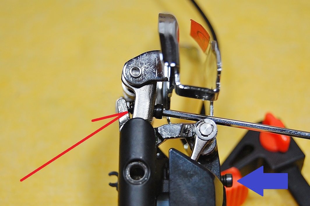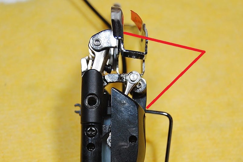 同じくインナーにシフトしました。Lo 側で制御されないものですから、Hi アジャストボルトが、アームに追従していて隙間がありませんね。