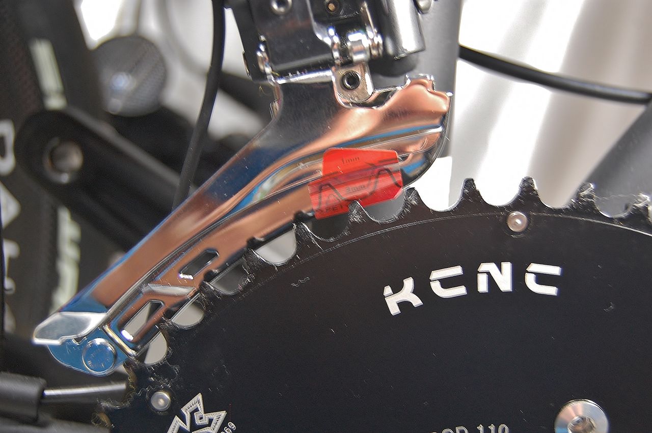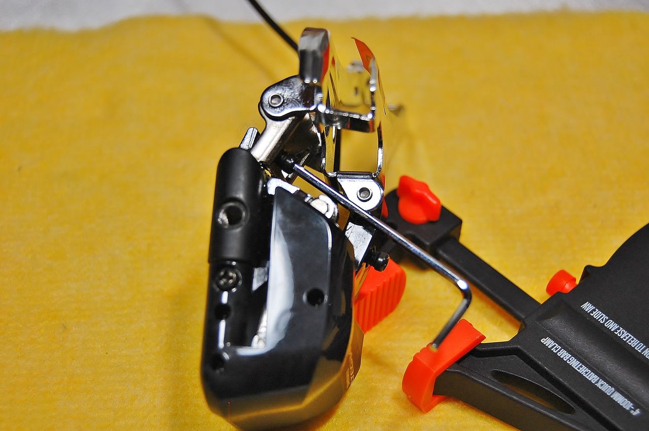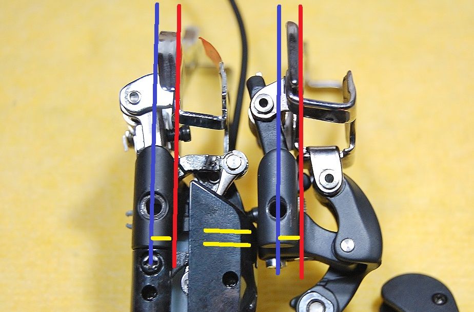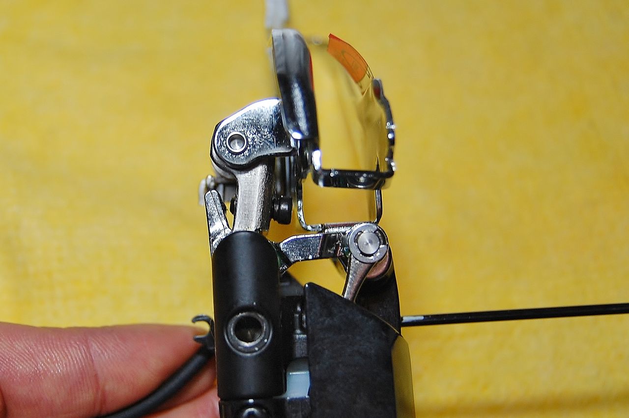 同じくインナーにシフトしました。Lo 側で制御されないものですから、Hi アジャストボルトが、アームに追従していて隙間がありませんね。