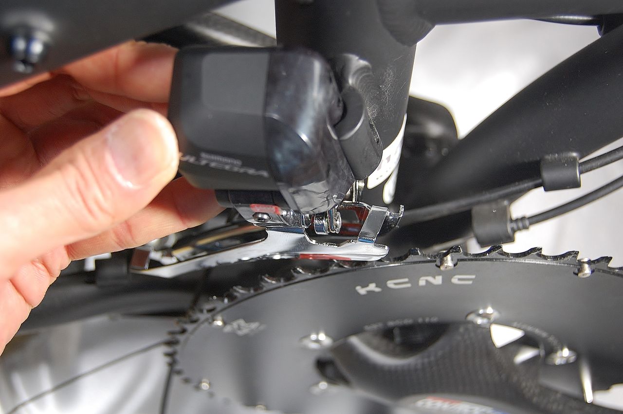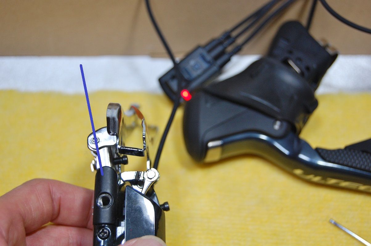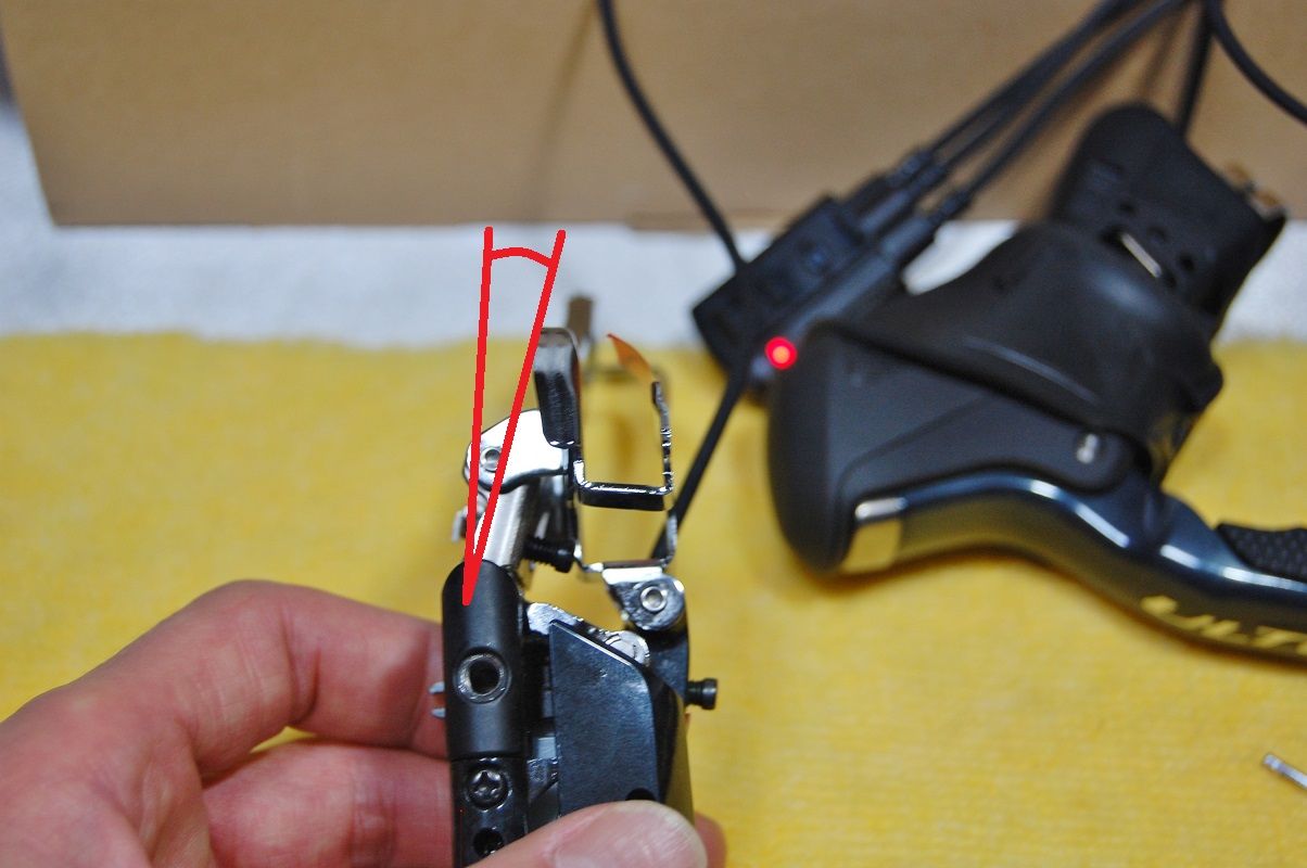 さて、右の機械式DURA は、船長のDAHON Mu SLXフロントダブルにピッタリとセッティングが合っていますから、左の電動も同じ位置からスタート出来なければ取付不可です。それでは、シマノのユーザーマニュアル、ディラーマニュアルを見ながら調整してみましょう。