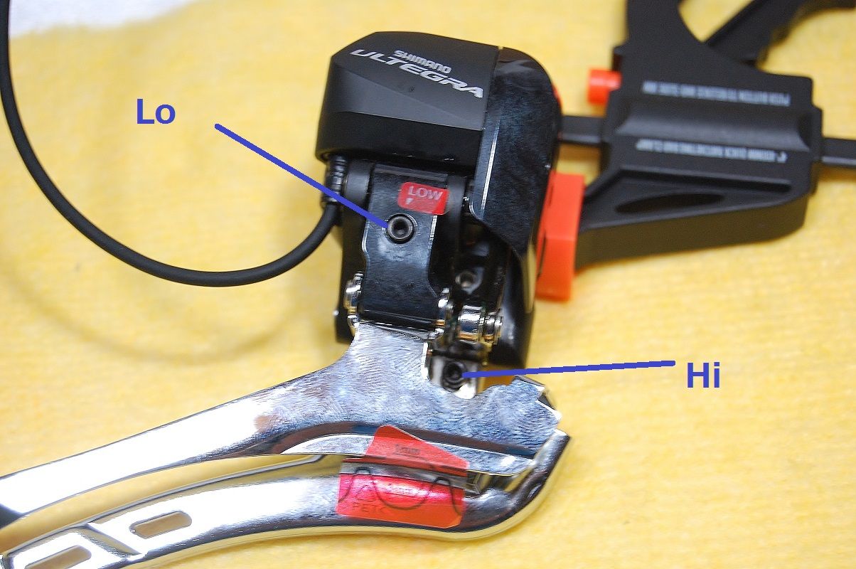 何とDAHON セッティングで、Hi アジャストスクリューが、Lo アジャストスクリューに変わったのです! シマノは、こんな使い方、思いも付かないだろうな、ははははは。(まだ笑えないが)