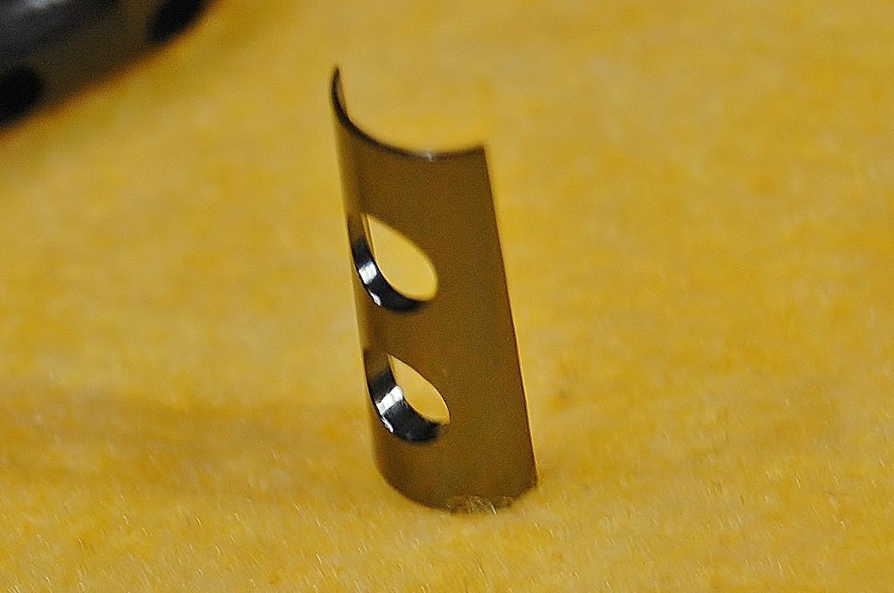 サーボモーターが動くとアームが右に動き、Hi アジャストボルトの先端を押します。ボルトは、ネジ山でパンタグラフに取り付いていますから、リターンスプリングを縮めつつ、ケージは、アウターリングへシフトします。