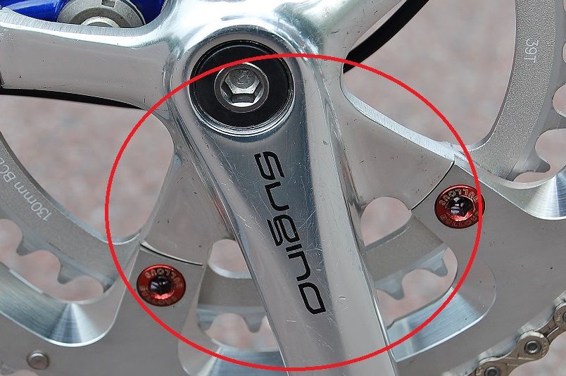 Sugino クランクアームポリッシュ部に小傷あり。