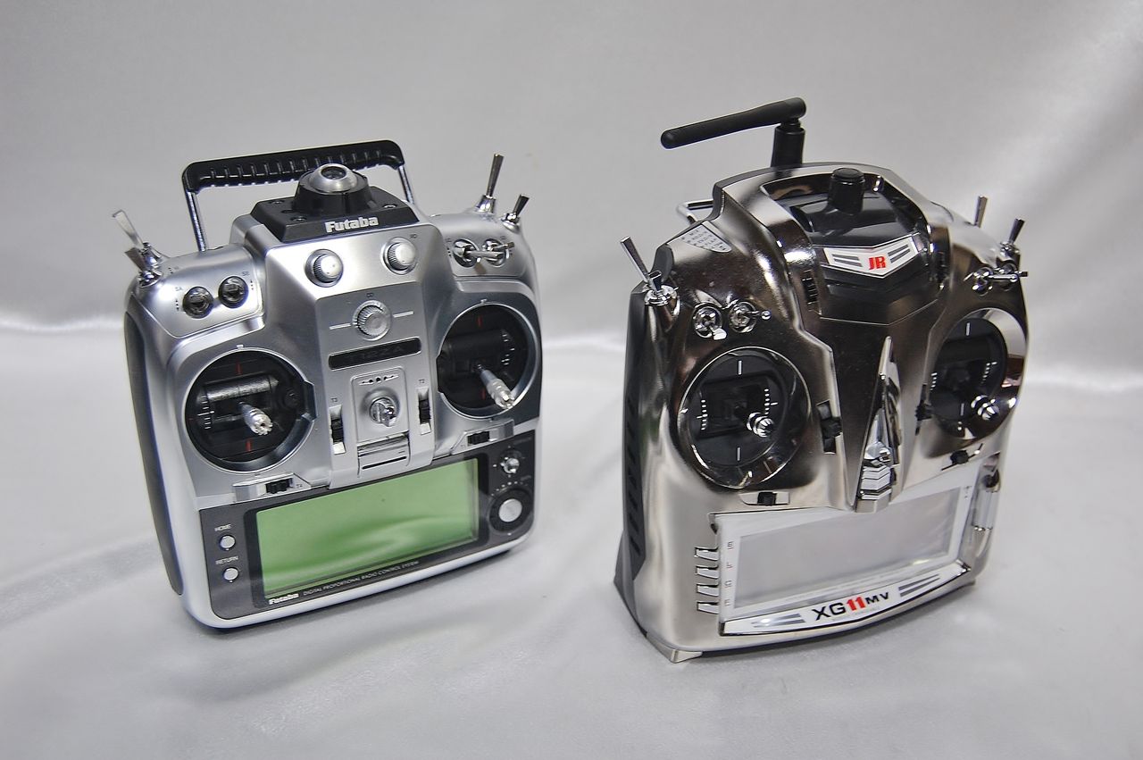 左のFutaba製は、当時最上位から2番目のモデルで、(最上位モデルは、windows 搭載)「良いプロポを持つと上手に飛ばせるようになるよ!」 などとと言われて奮発したが、一向に腕は上がっていない。一方、右のJR製(最上位モデルは、Android 搭載)が最近購入した最新送信機で、価格は1/5 ながら機能は進化し12ZA を上回る。この辺は、シマノさんも見習って頂きたいところだ。