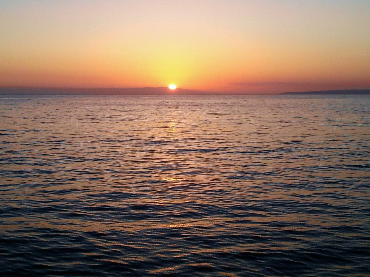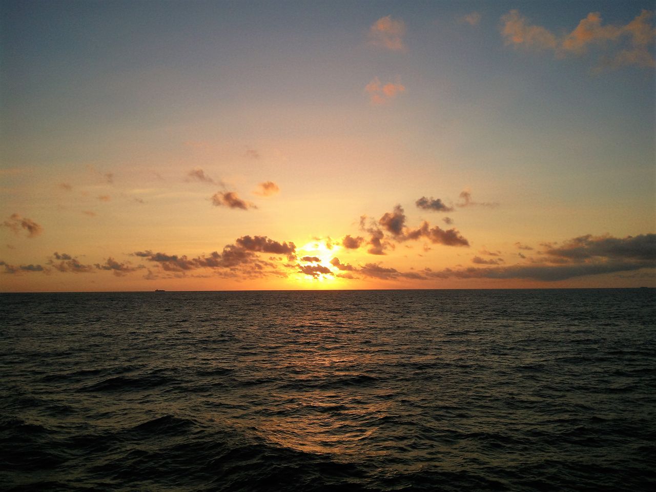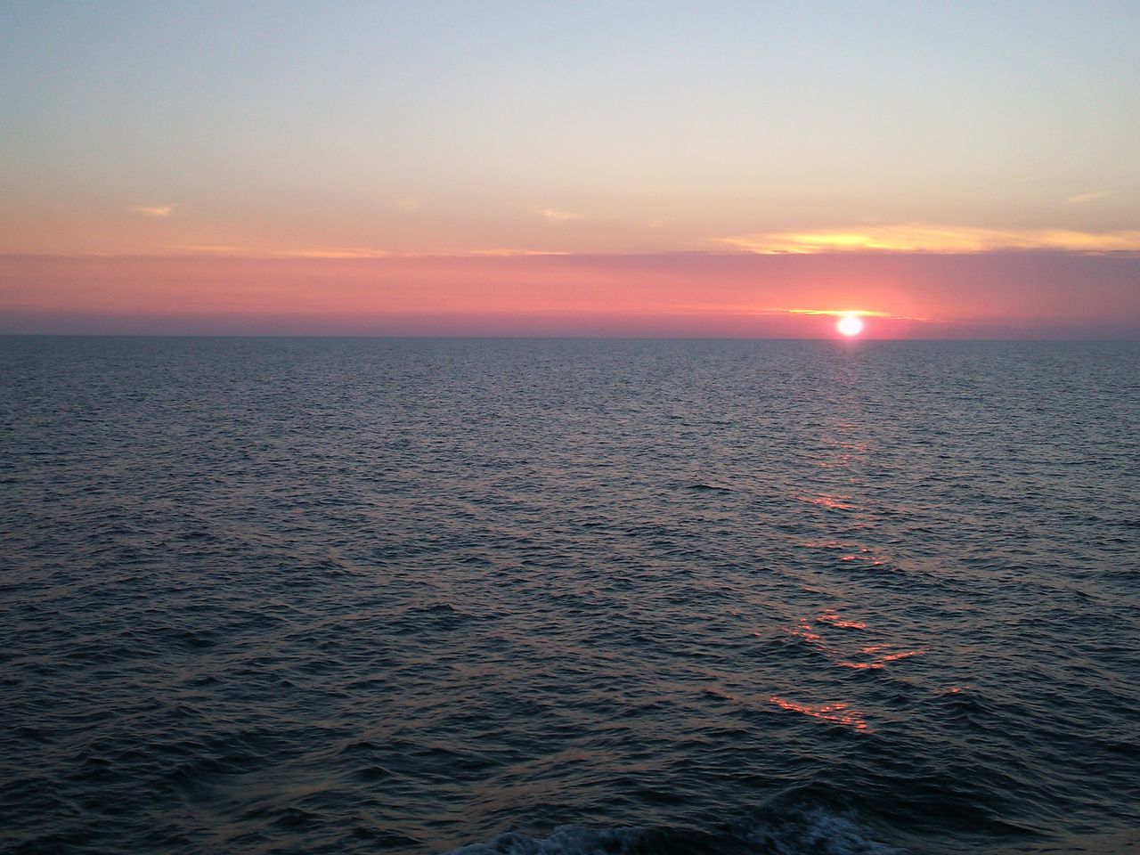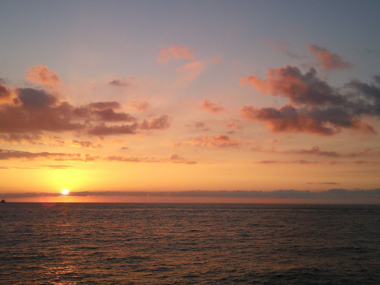 ・8/12日、太平洋側南下中ですが、茨城県犬吠埼沖約5海里、05:05頃の日の出です。