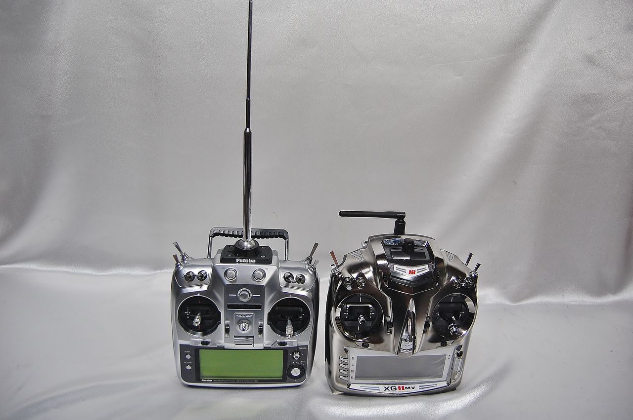 最新プロポでは、短いアンテナの2.4GHz 帯の電波を使っており、受信機とペアリングを行えば混信は皆無だ。これに比べ、旧型はスルスルとアンテナを伸ばす40 / 72MHz 帯で、同じ周波数を使っている人が電波を出せば必ず混信し墜落となった。だが現在この辺の周波数を使っている人は殆どいなくなったので独占だが。