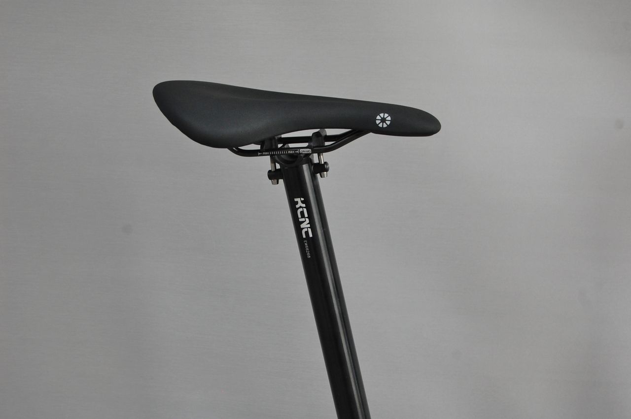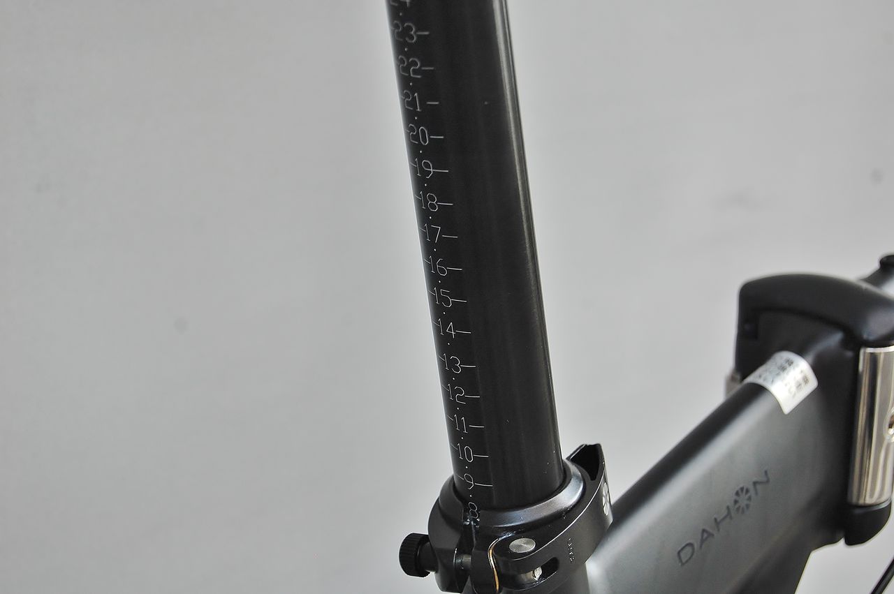 シートポストには、カーボンより軽い高価なKCNC ライトウイング(マーク入りDAHONオリジナル)を採用。