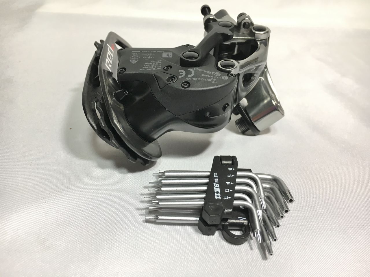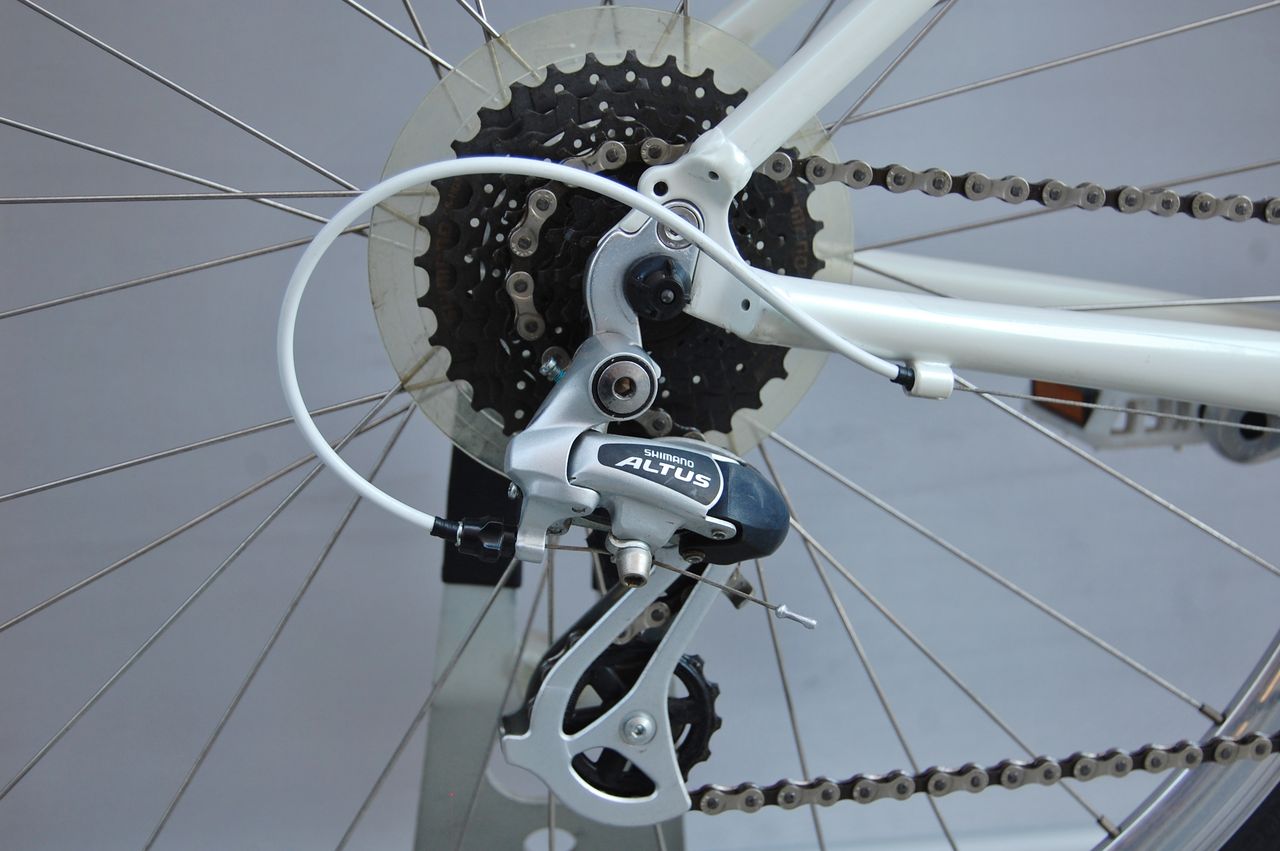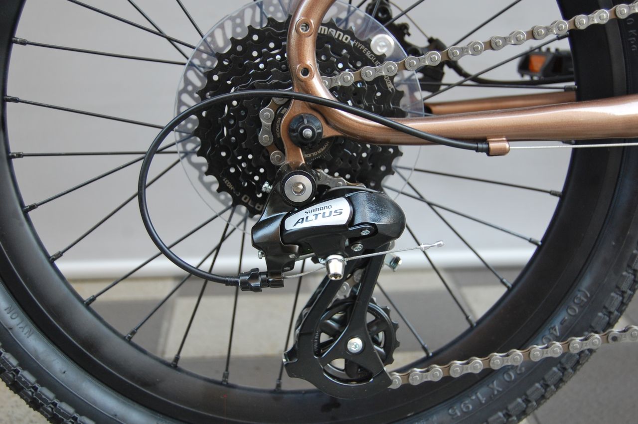 ループエンドに装着されるリヤディレーラーは、Shimano Altas 8 Speed。カセットは、11-32T。