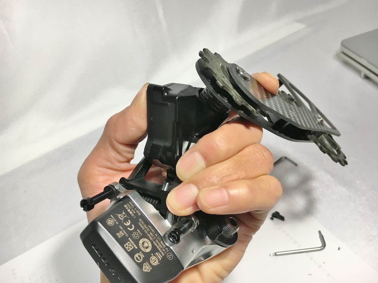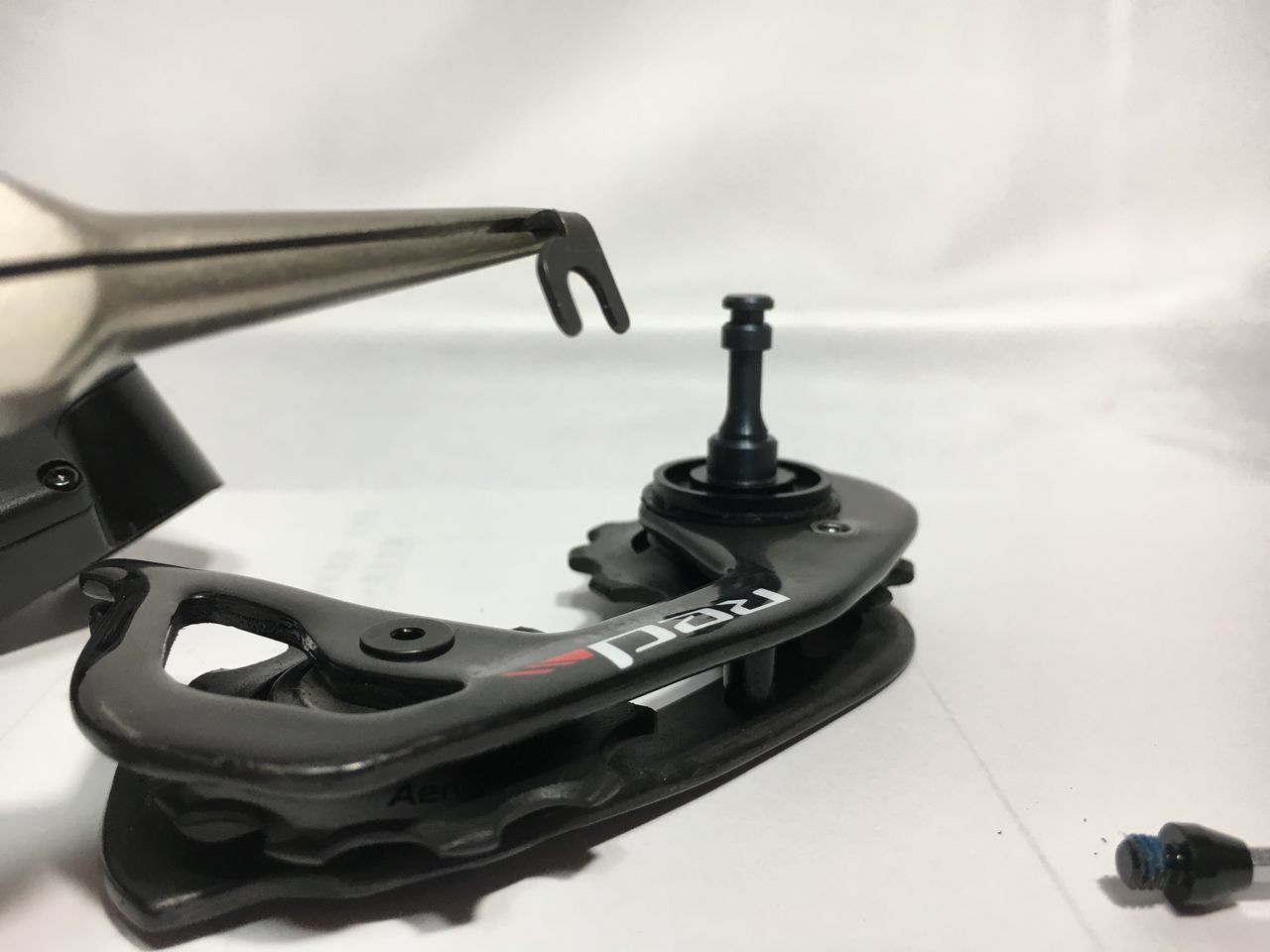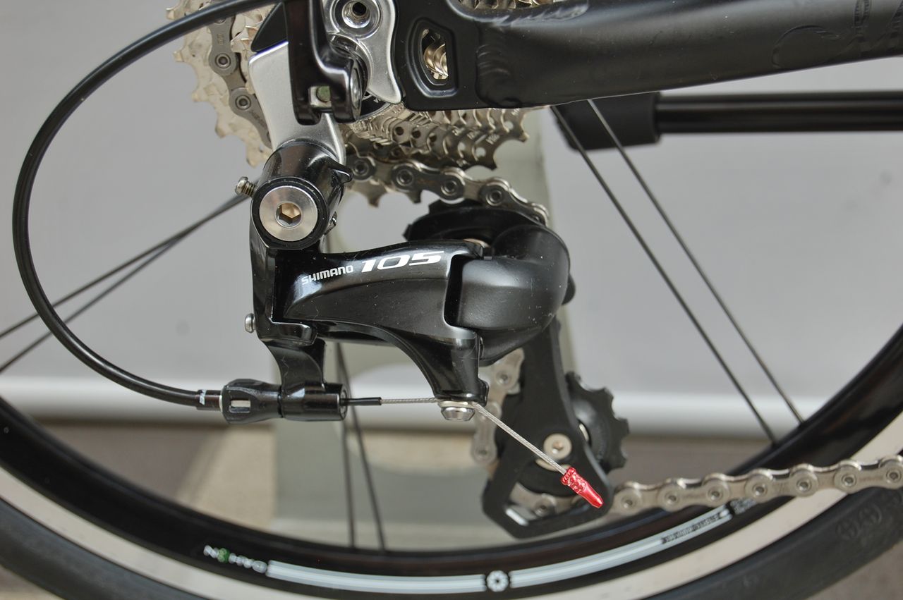 ループエンドに装着されるリヤディレーラーは、Shimano Altas 8 Speed。カセットは、11-32T。