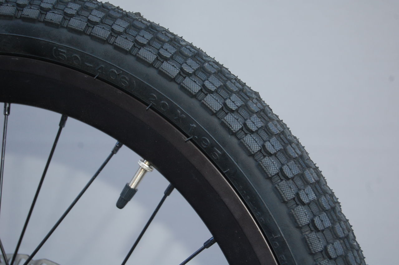 ブロックパターンのタイヤは、KENDA K-RAD 20×1.95。
