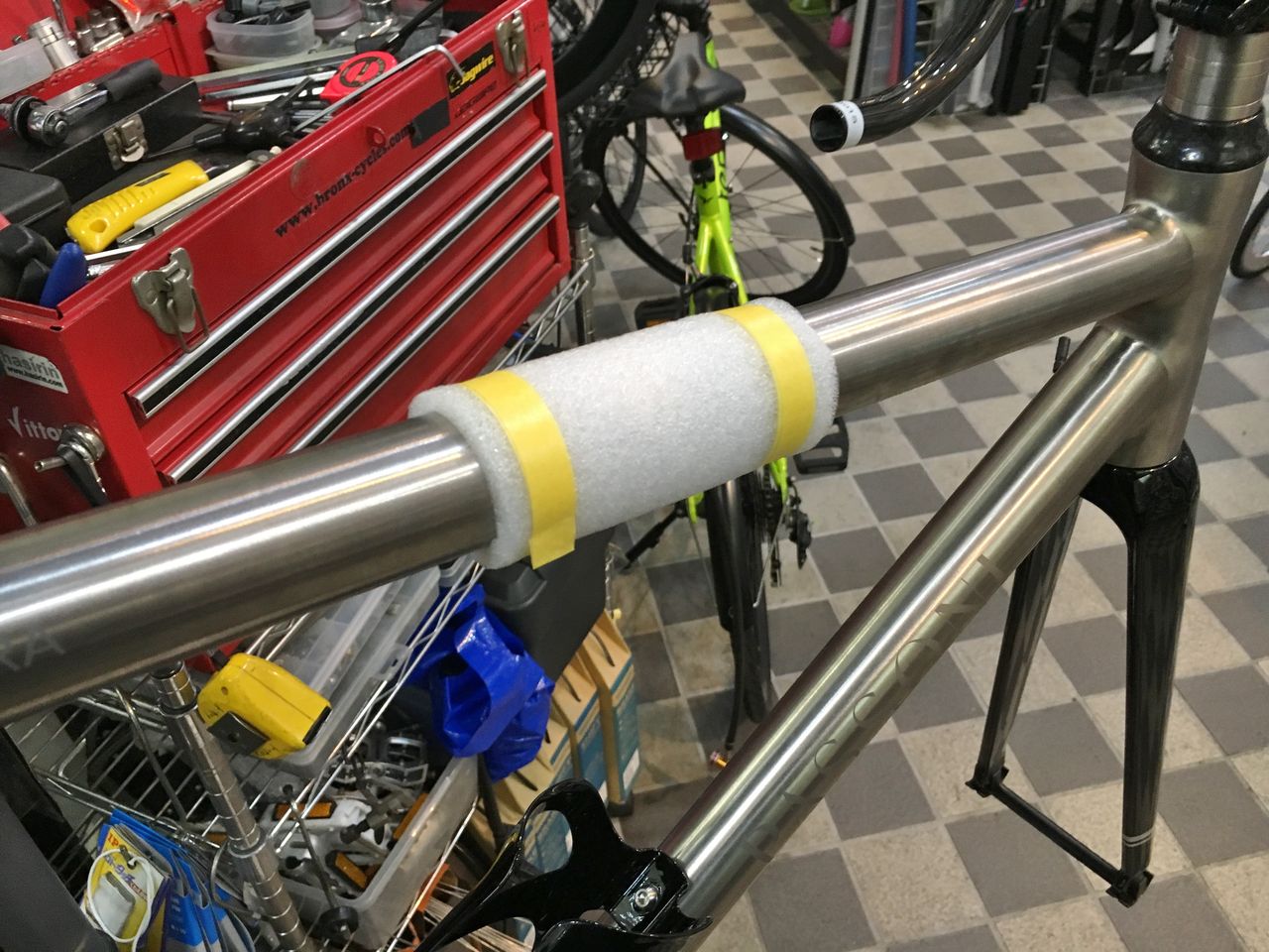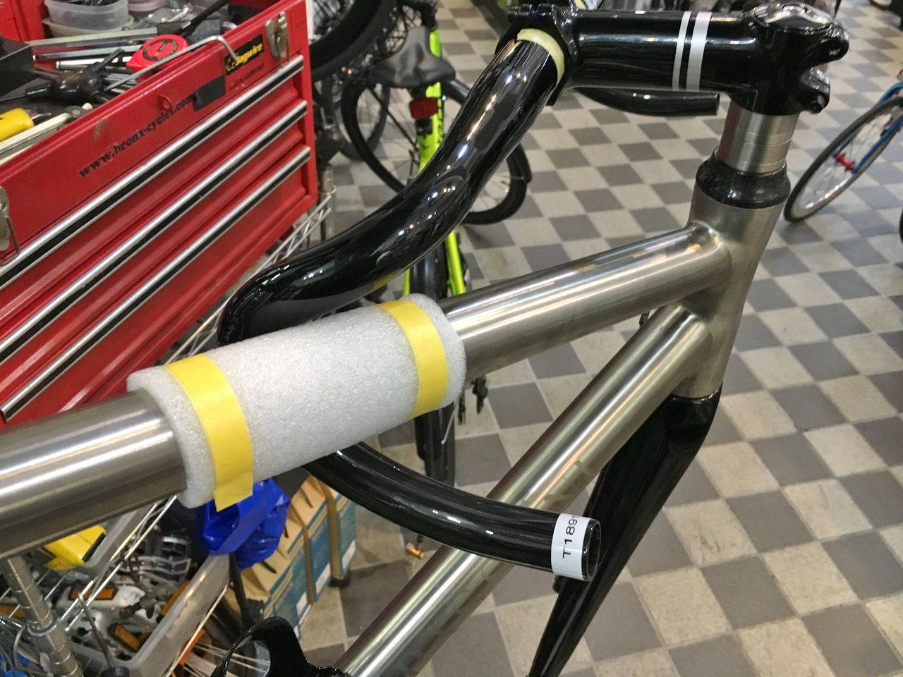 完成まで、トップチューブにプロテクターを巻いておきましょうかね。