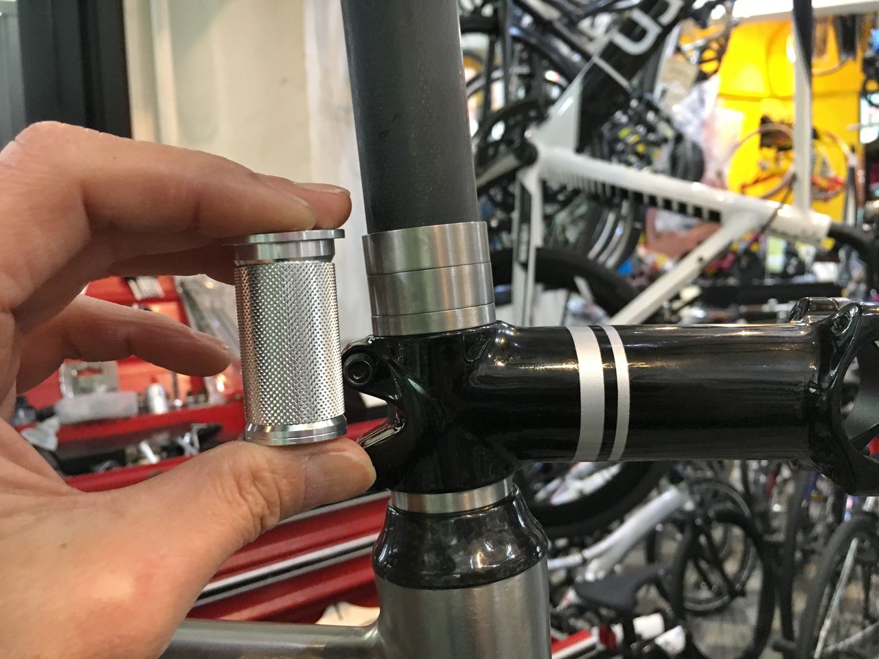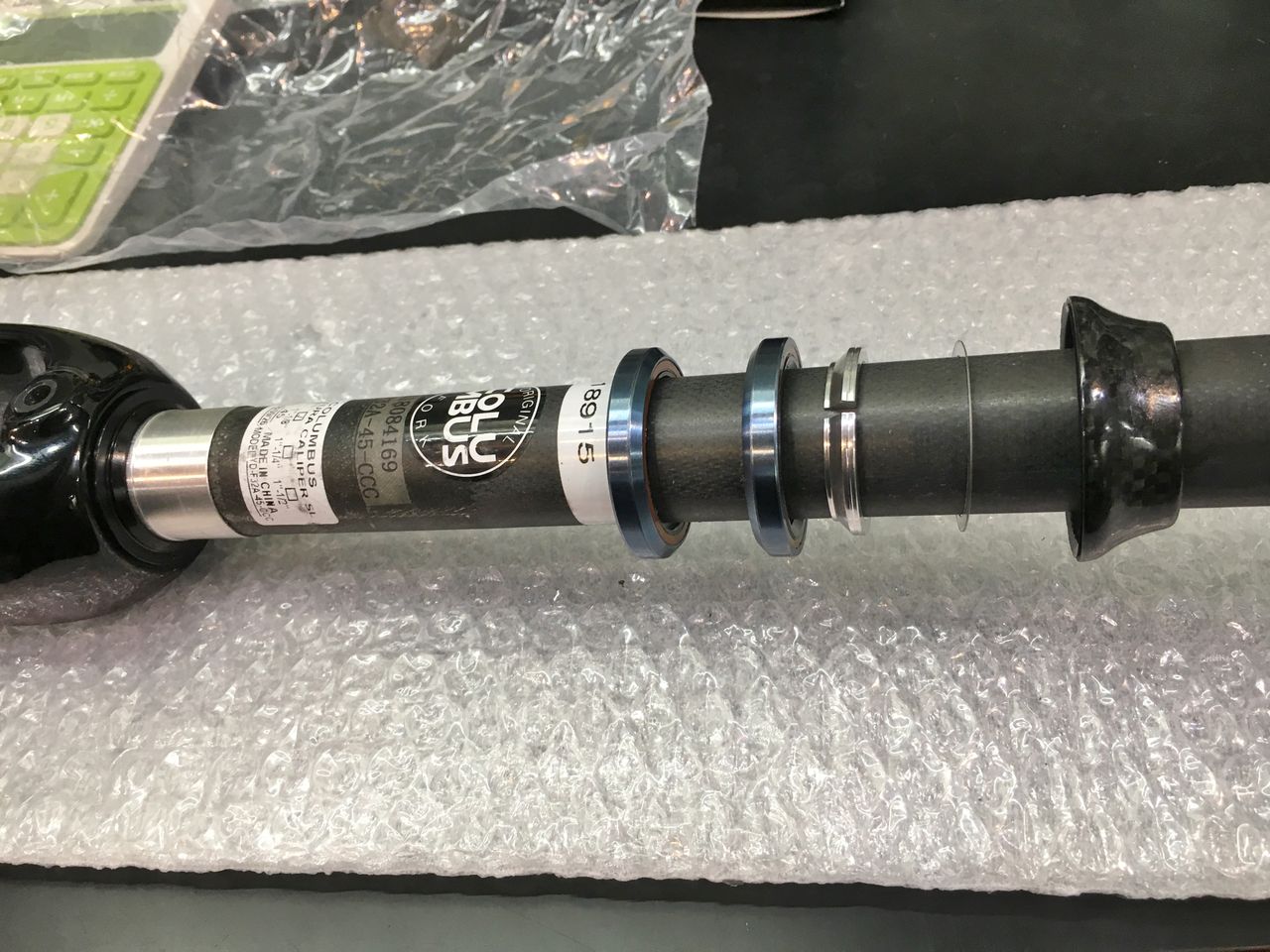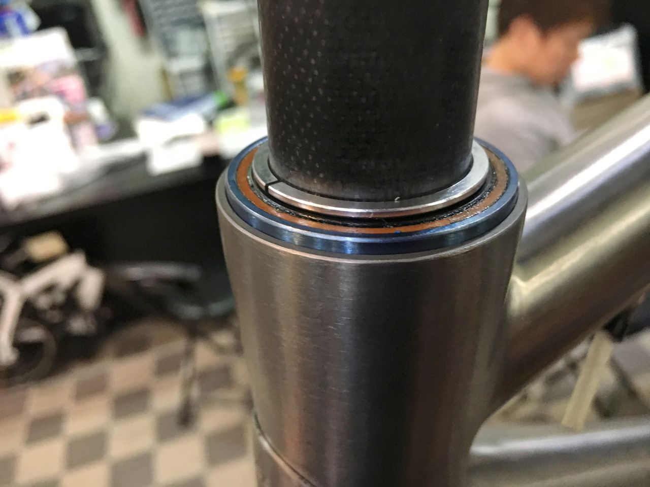 0.5を2枚で 1mm とすると良好な回転が得られました。これでやっとステアリングヘッドが決まります。