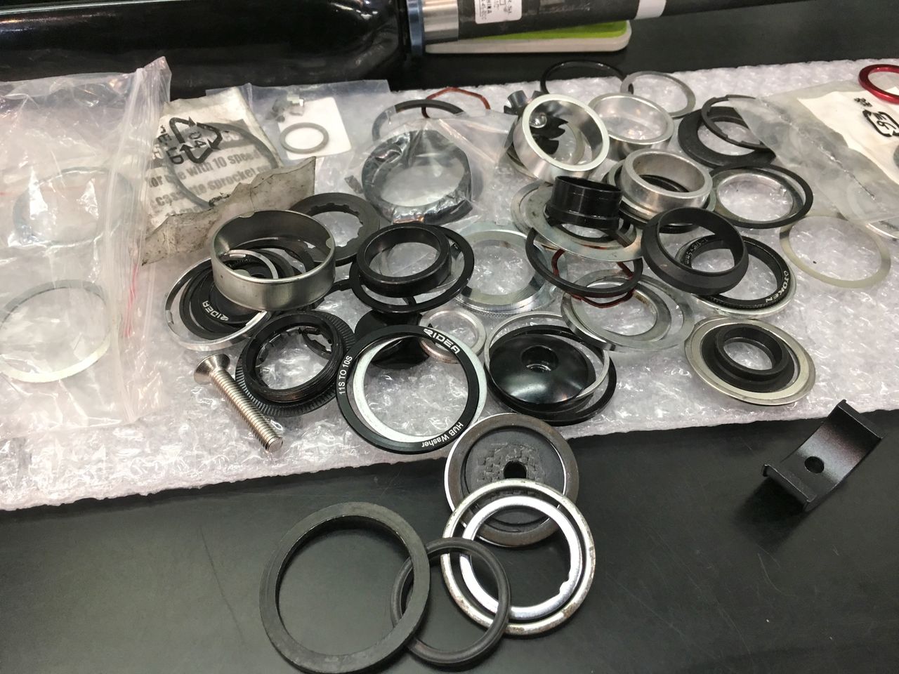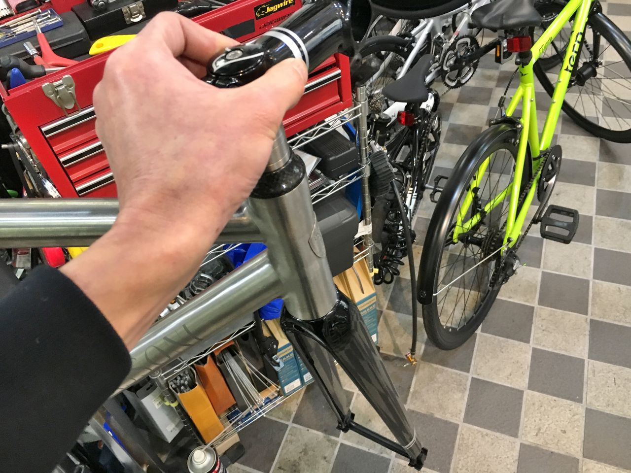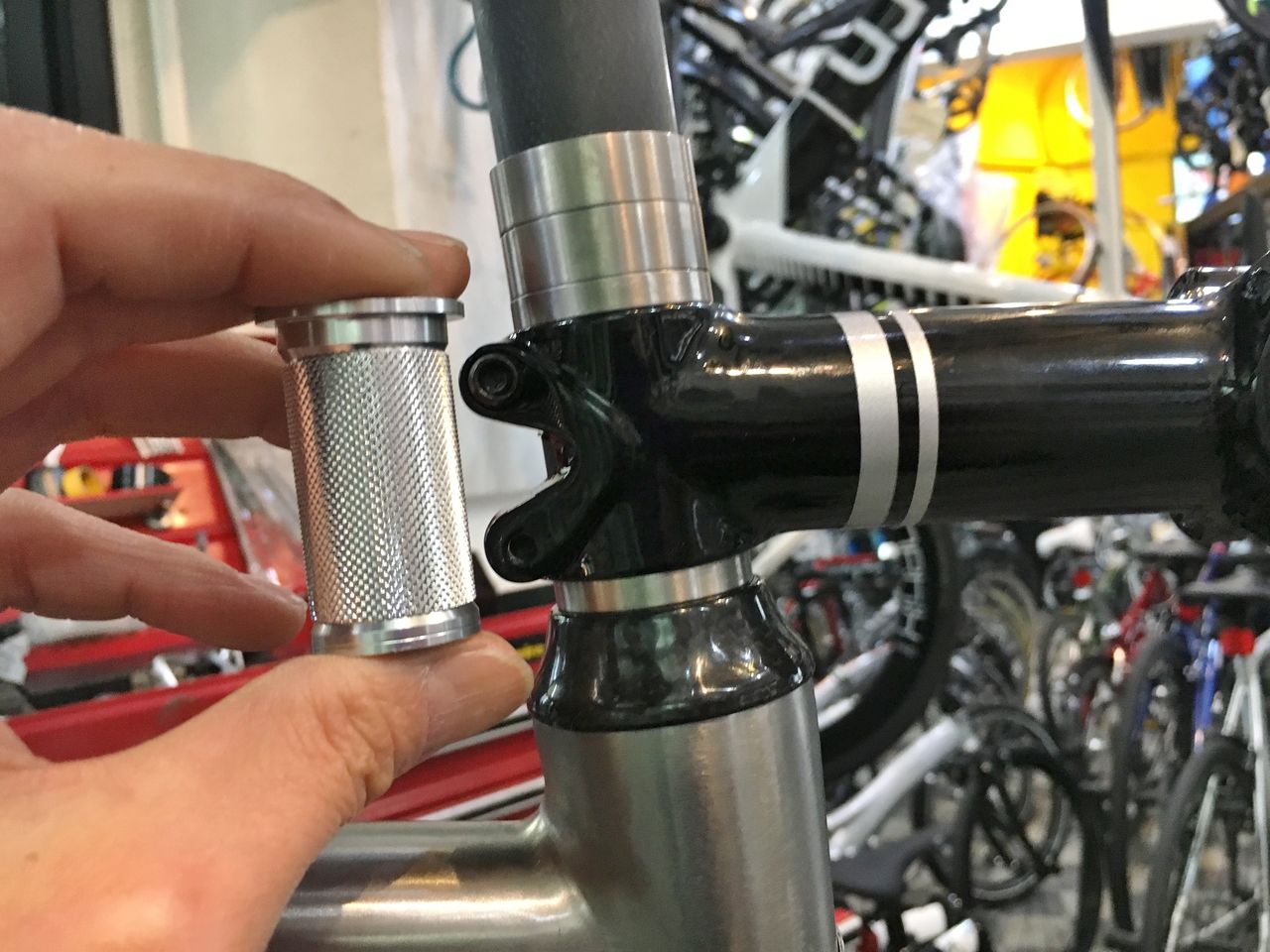0.5を2枚で 1mm とすると良好な回転が得られました。これでやっとステアリングヘッドが決まります。