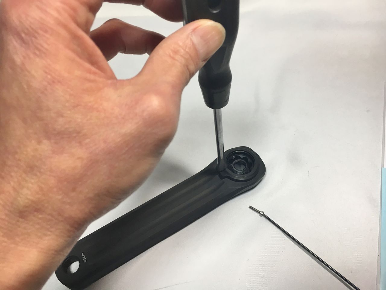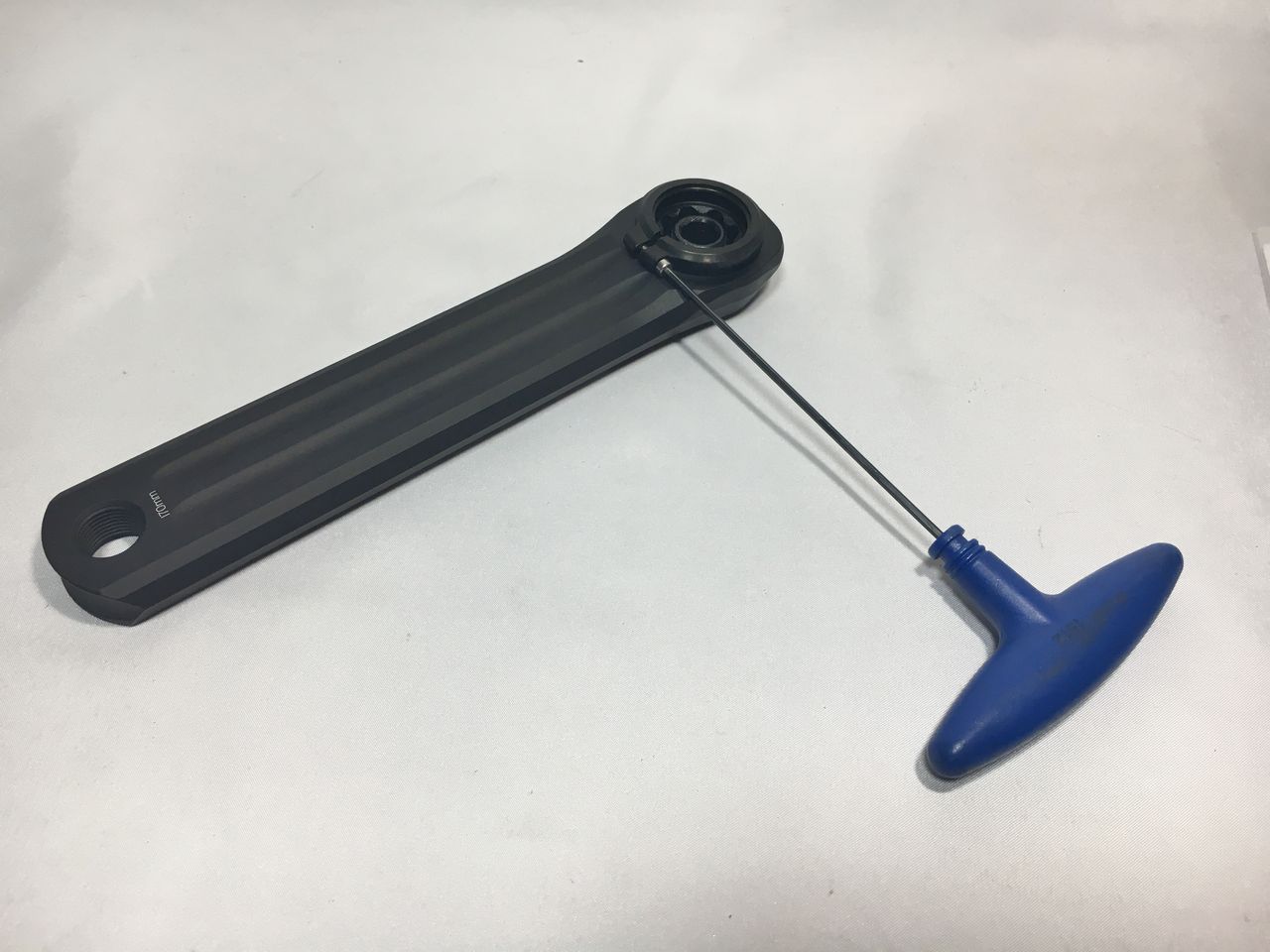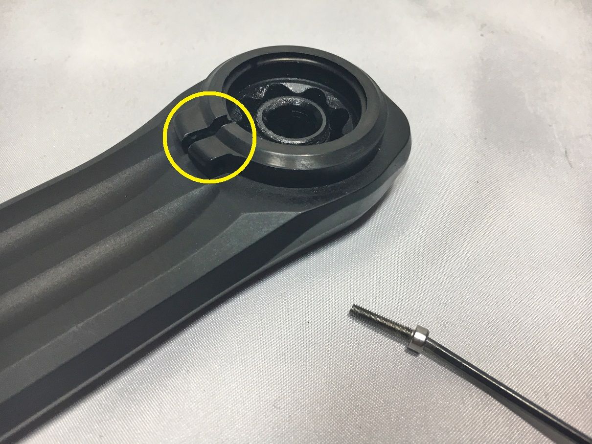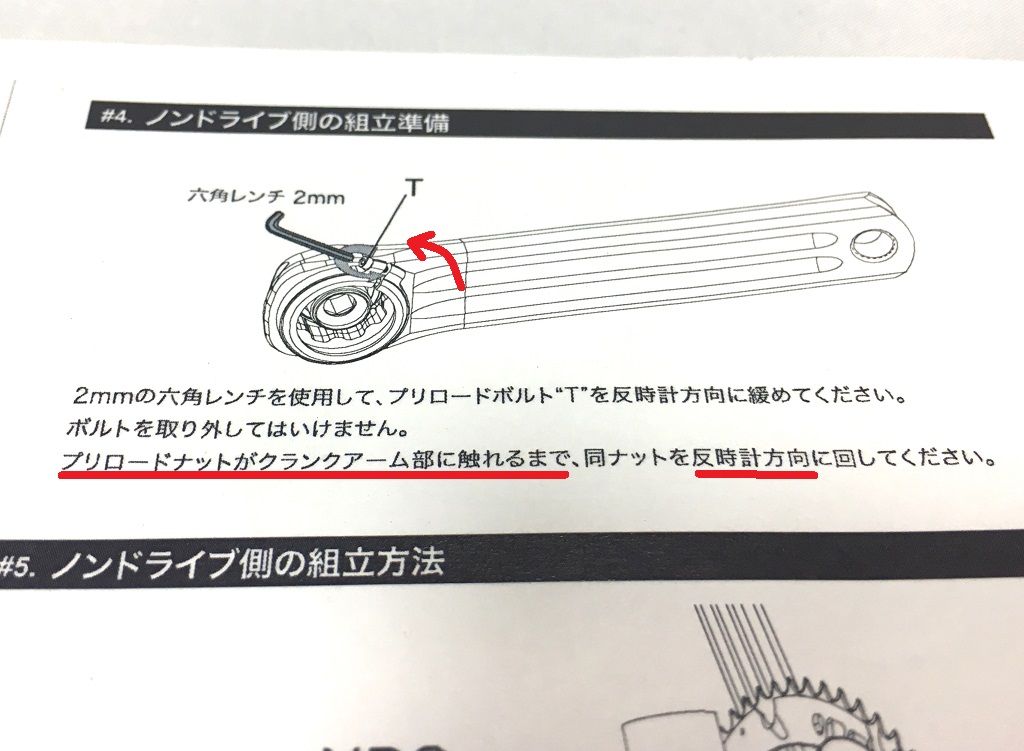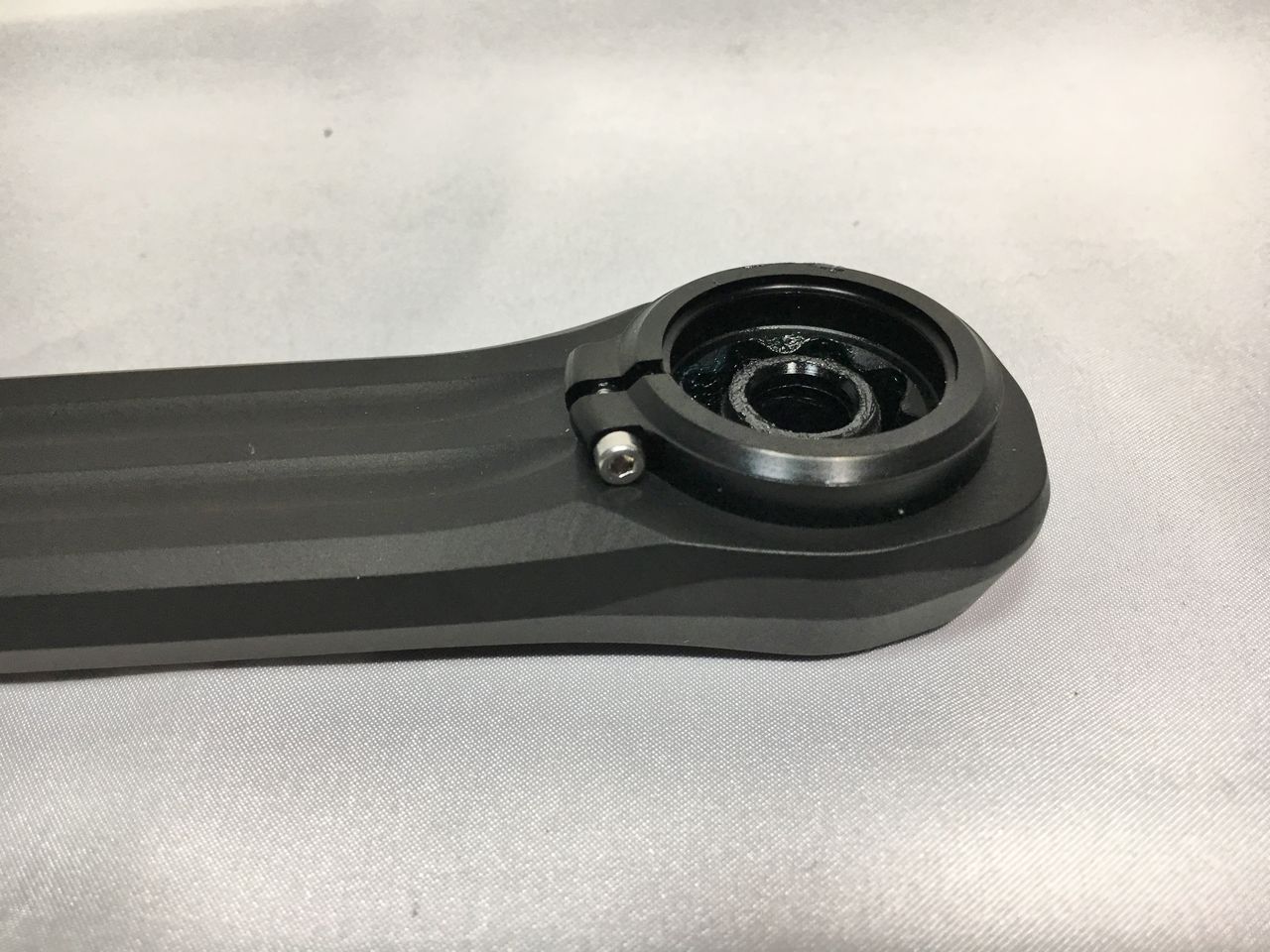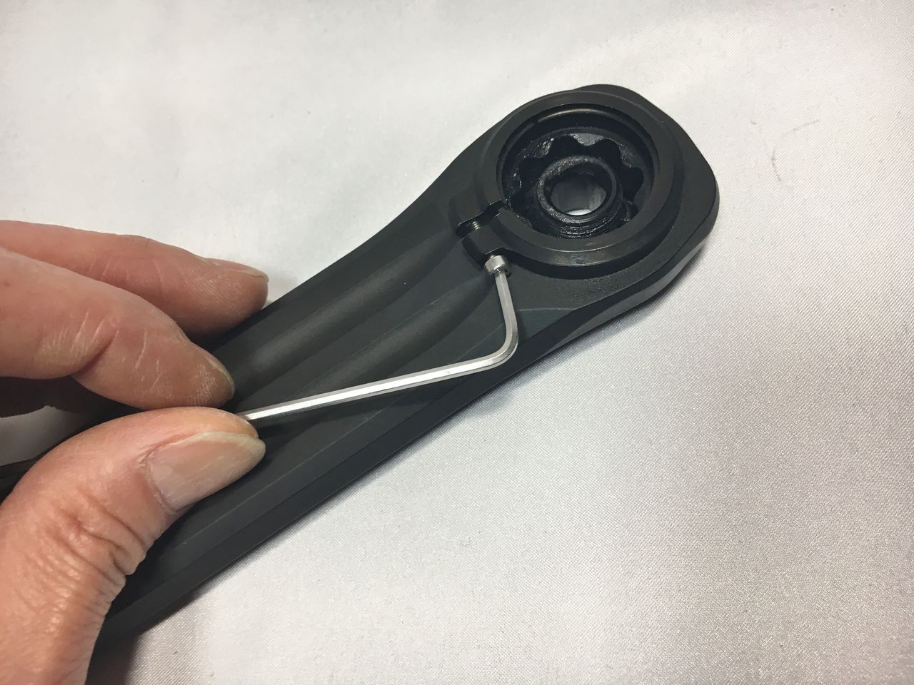 左クランクアームだけを取り付けてフィキシングボルトをレンチが止まるまで軽く締め込みました。