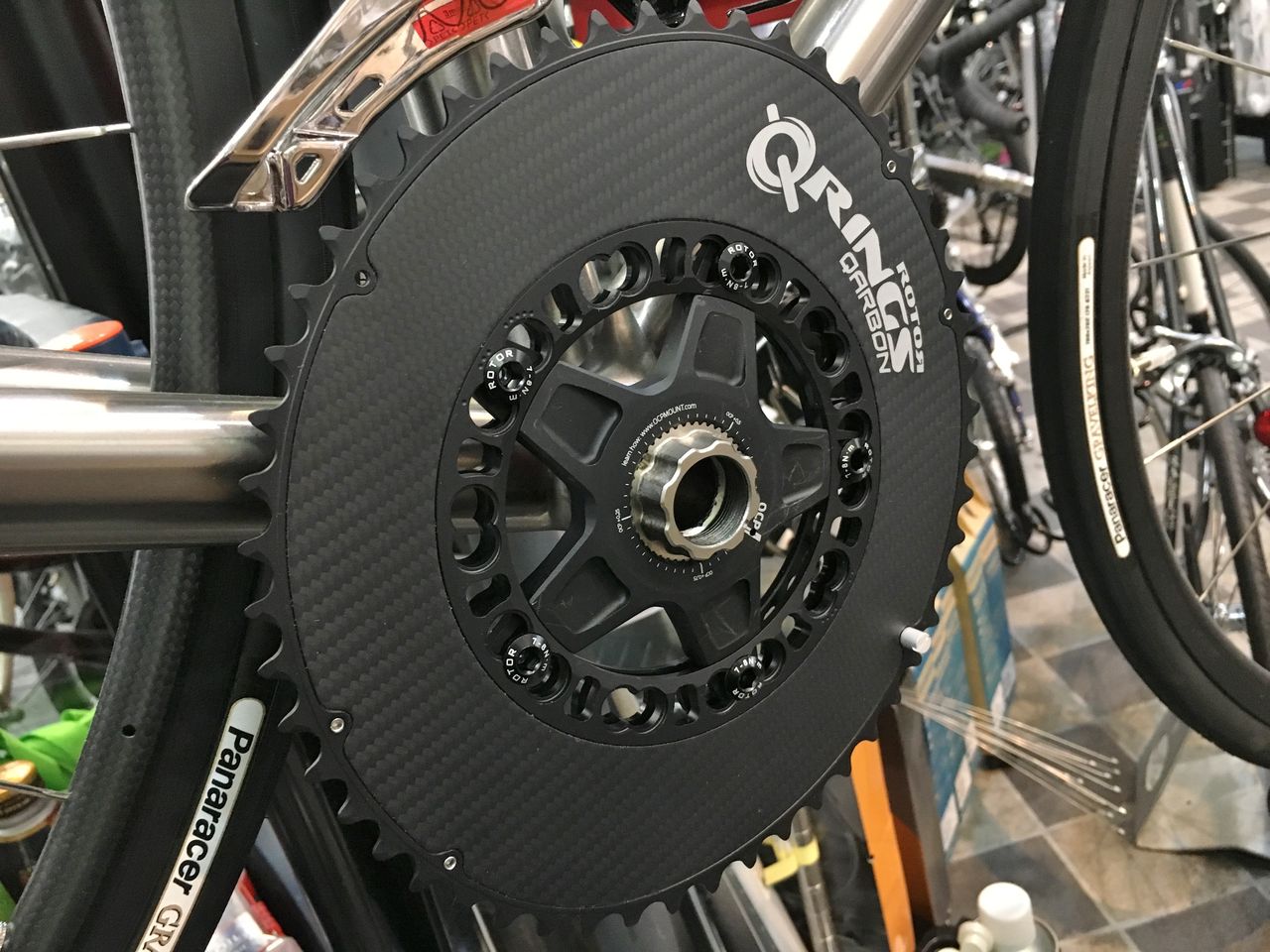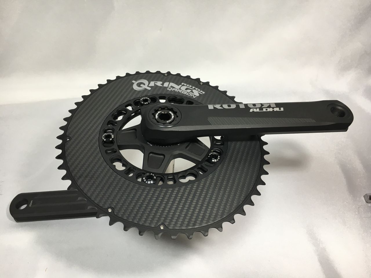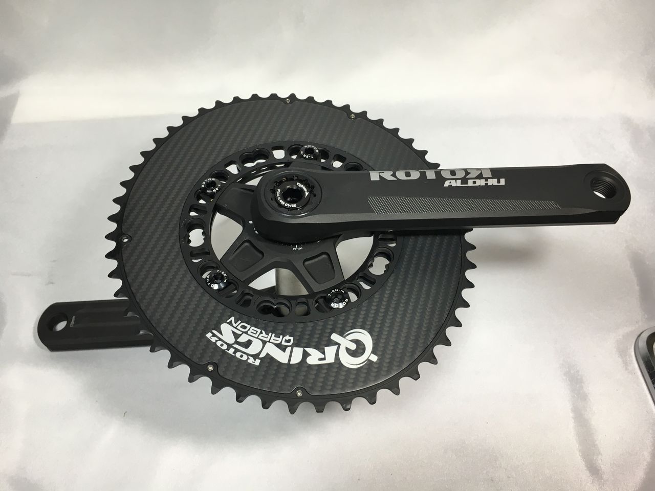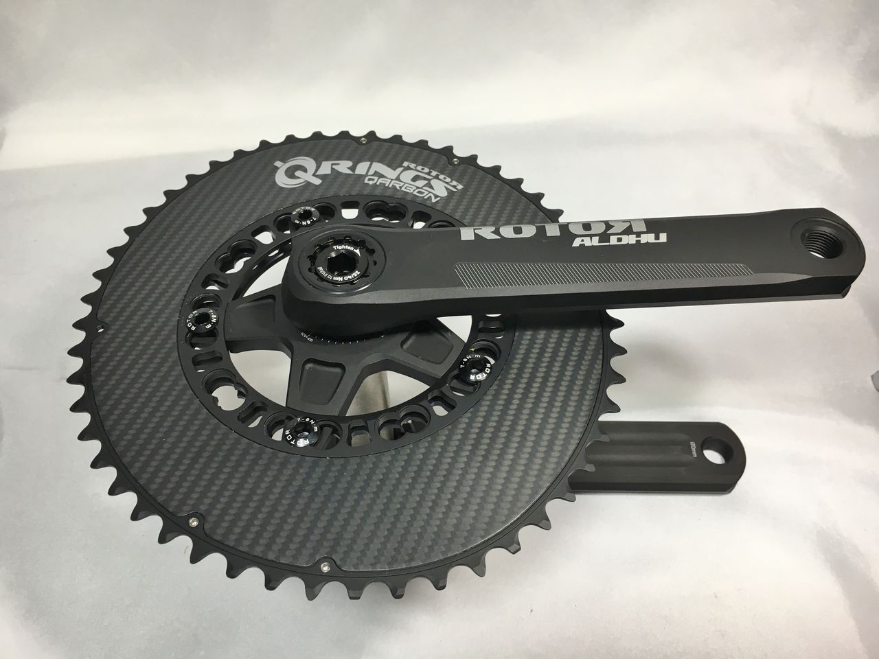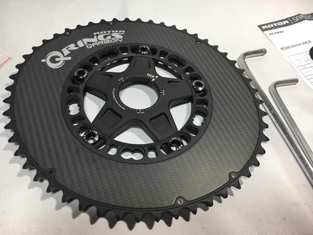 左クランクアームだけを取り付けてフィキシングボルトをレンチが止まるまで軽く締め込みました。