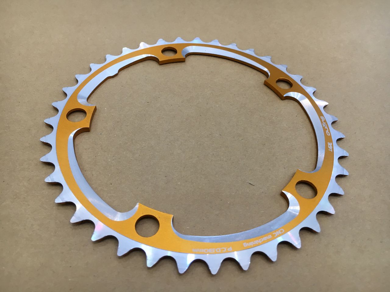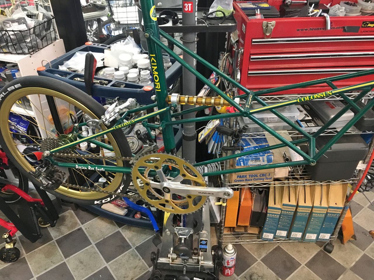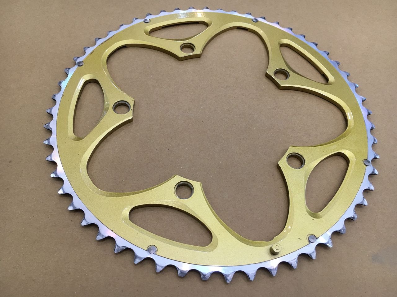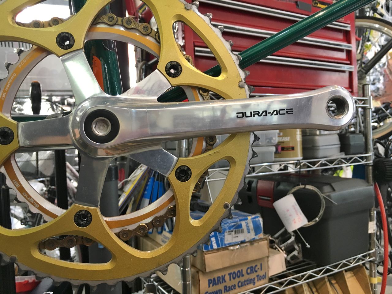 アウターリングは、Sugino PE130S 56T。井本さん金に塗ったな。