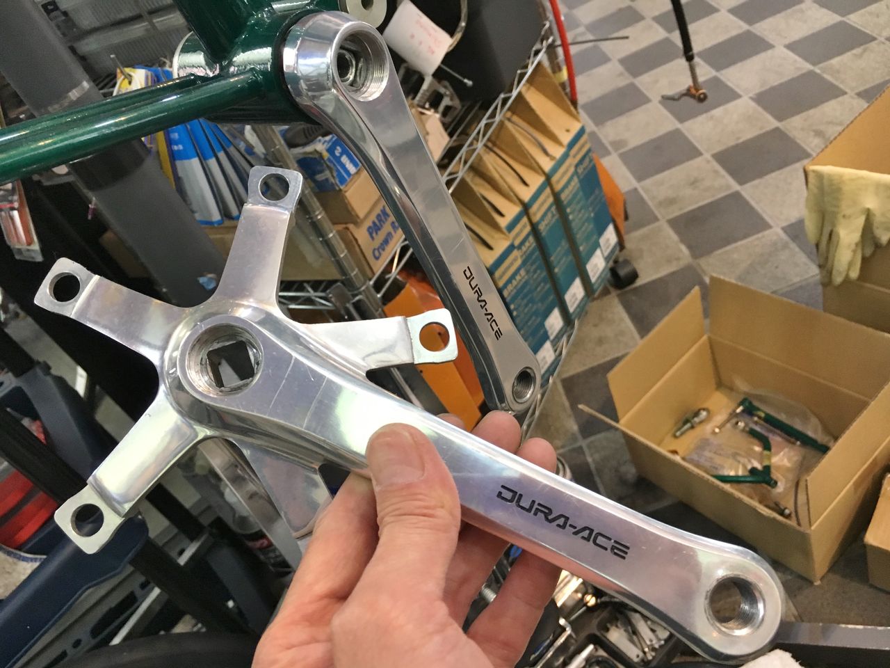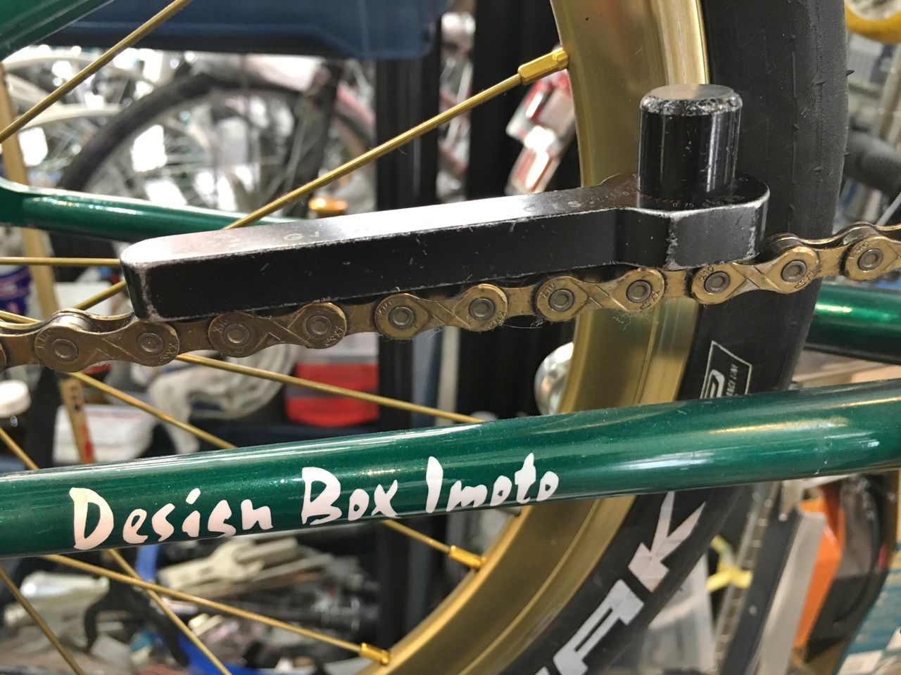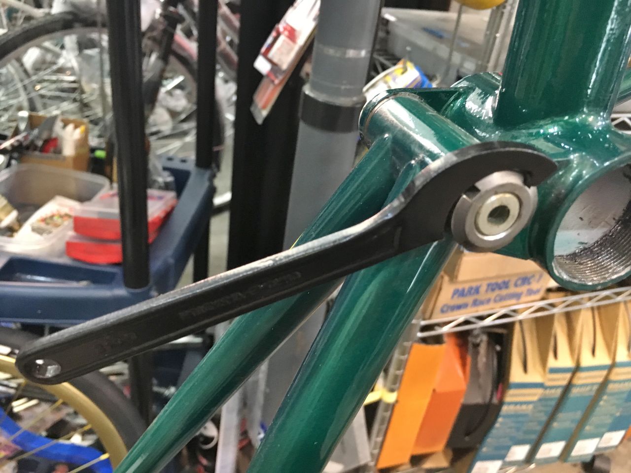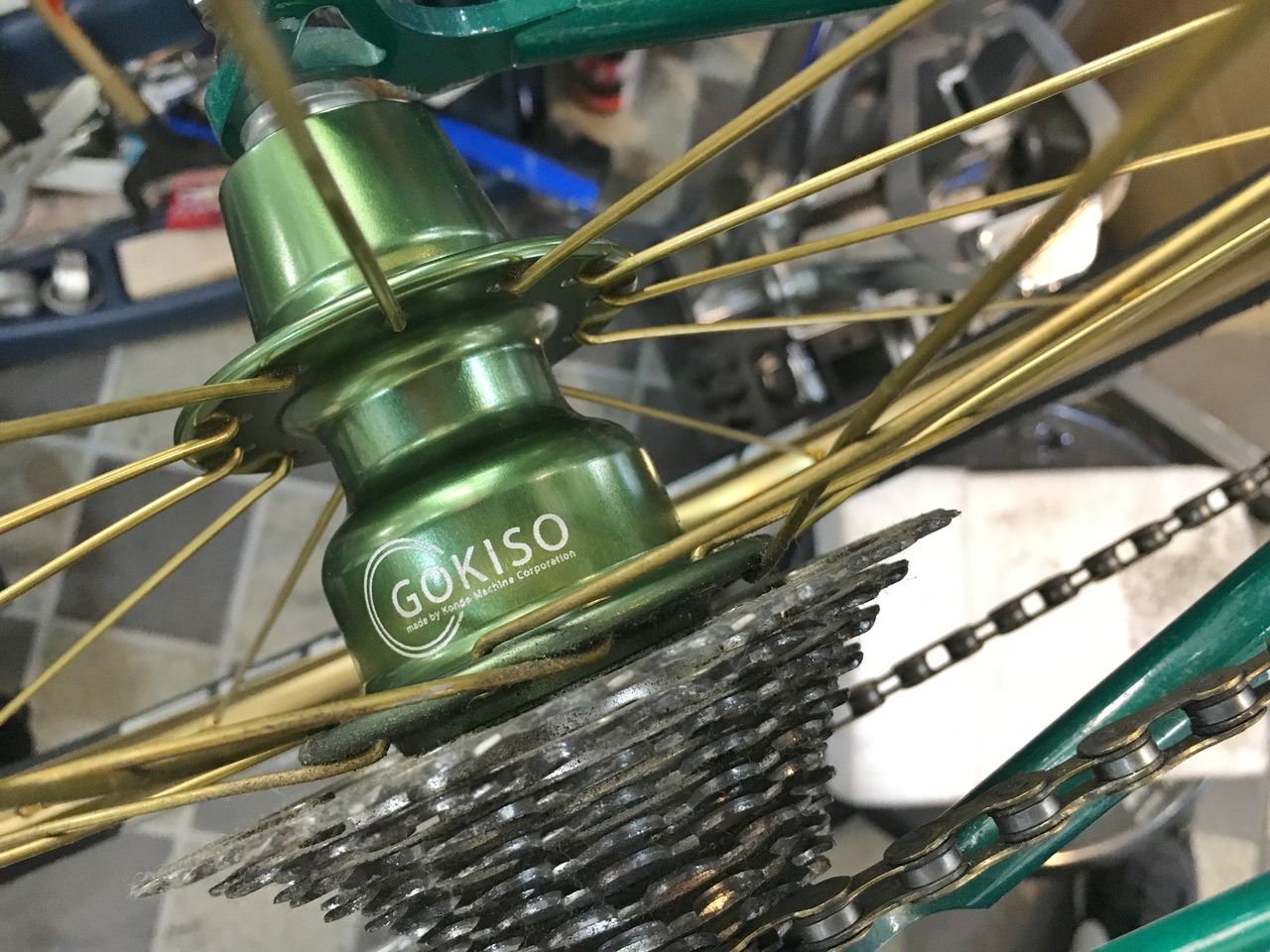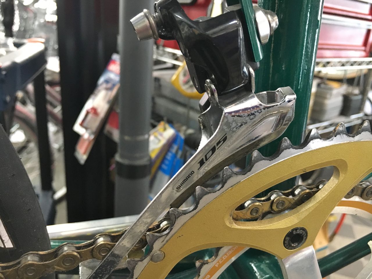 アウターリングは、Sugino PE130S 56T。井本さん金に塗ったな。