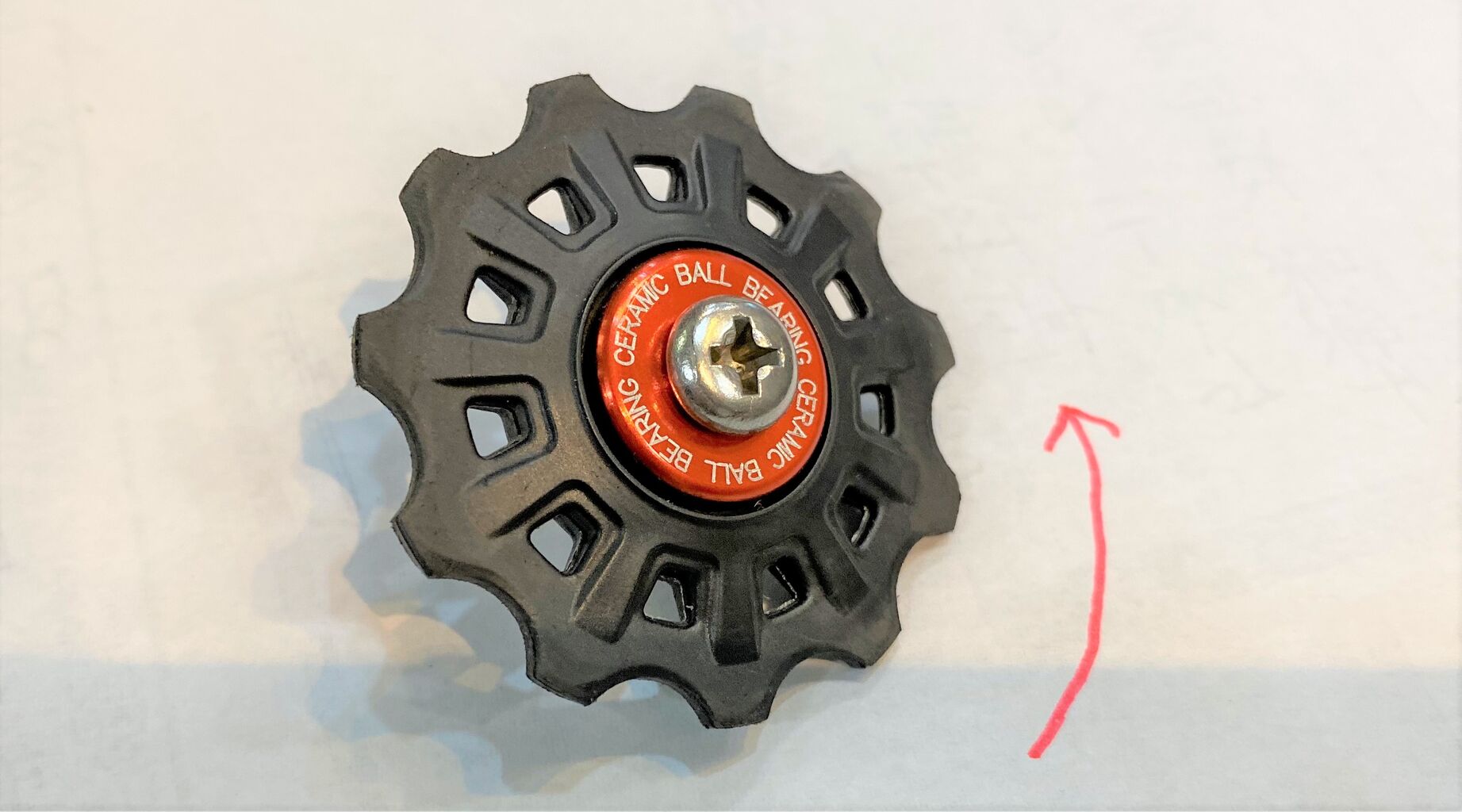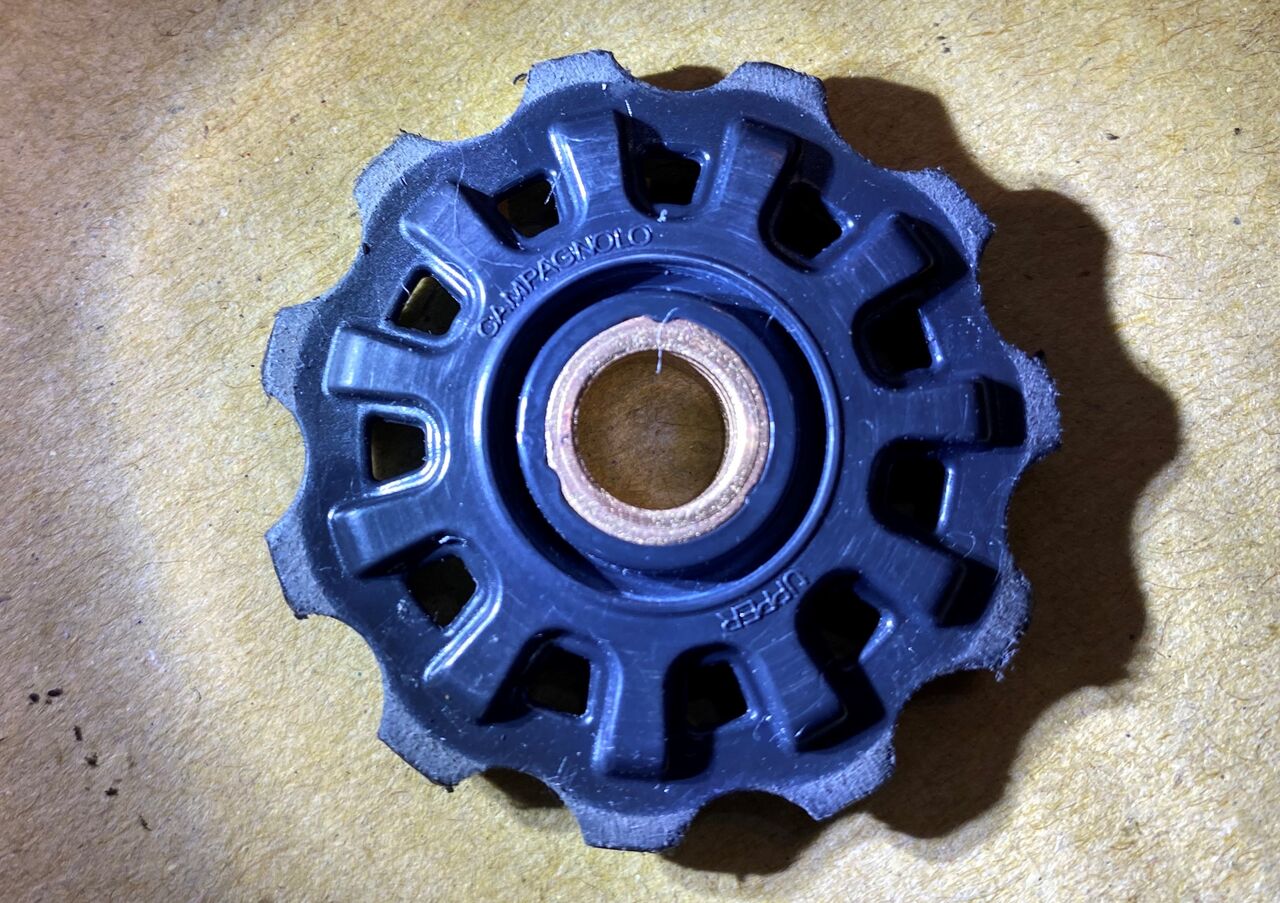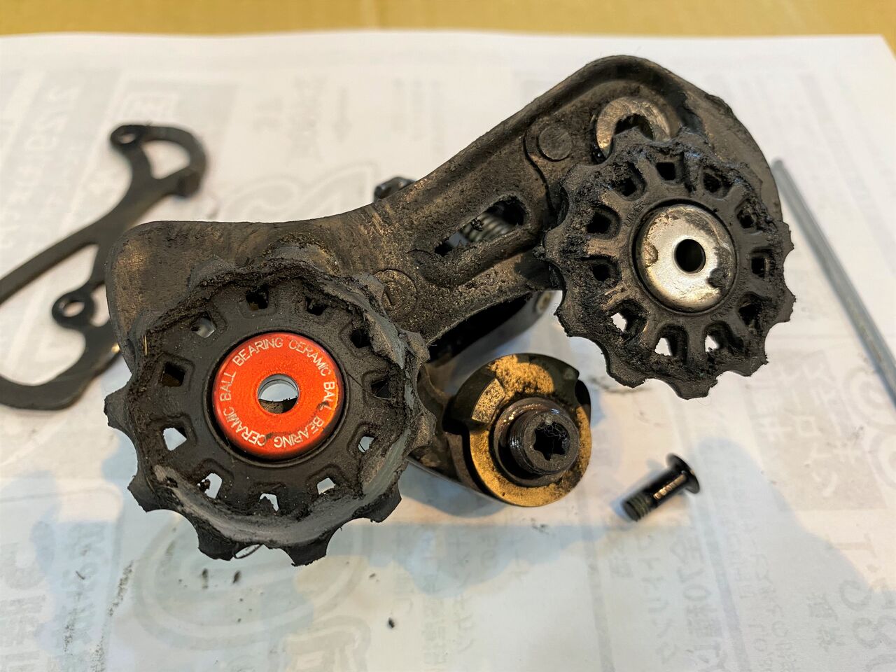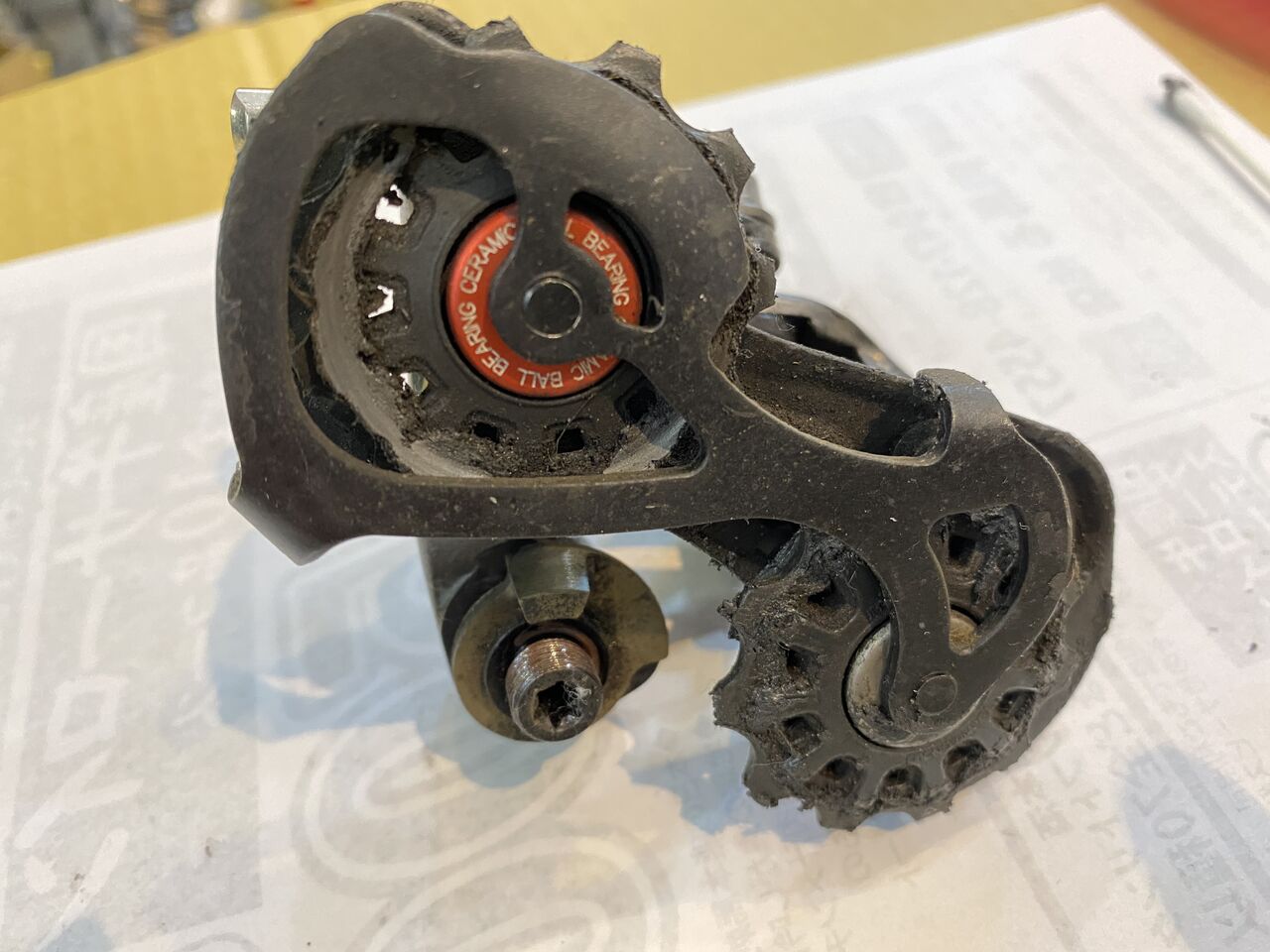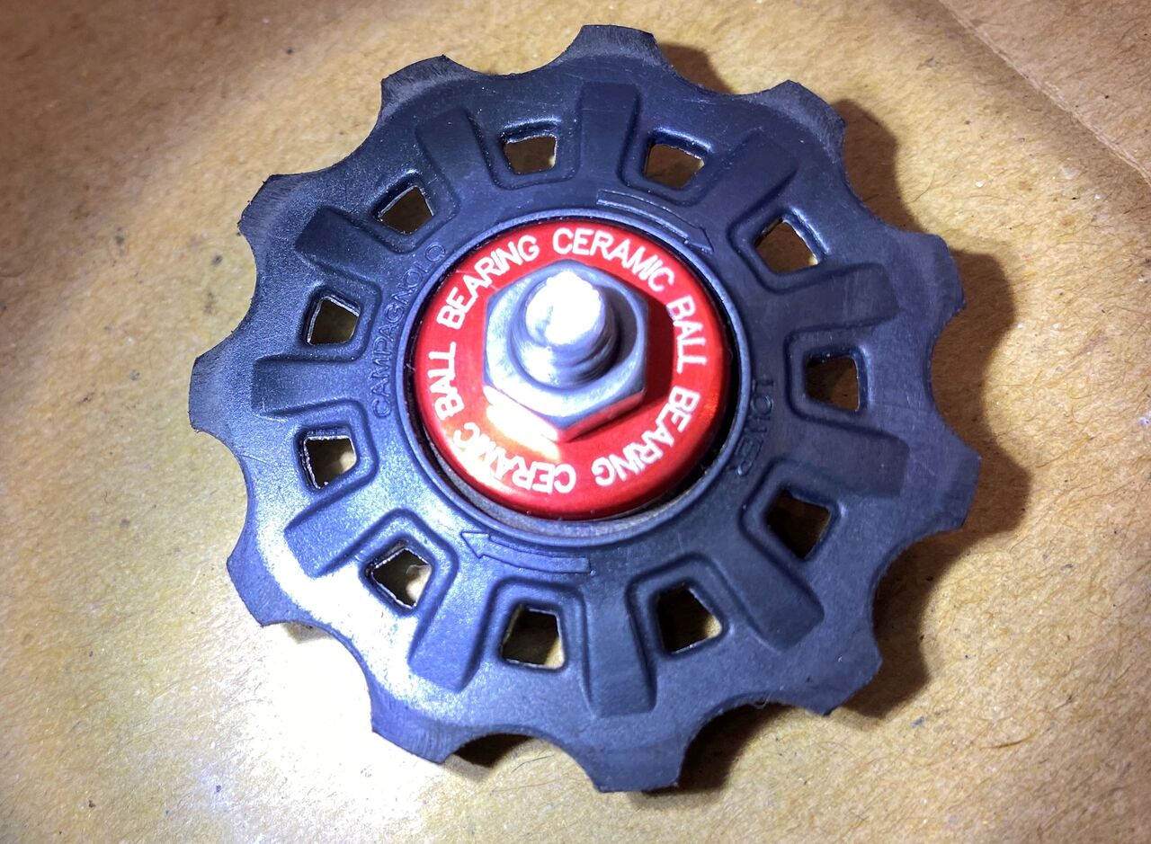 右ガイドプーリーがプレーンベアリングで左テンションプーリーがシールドセラミックベアリングね。