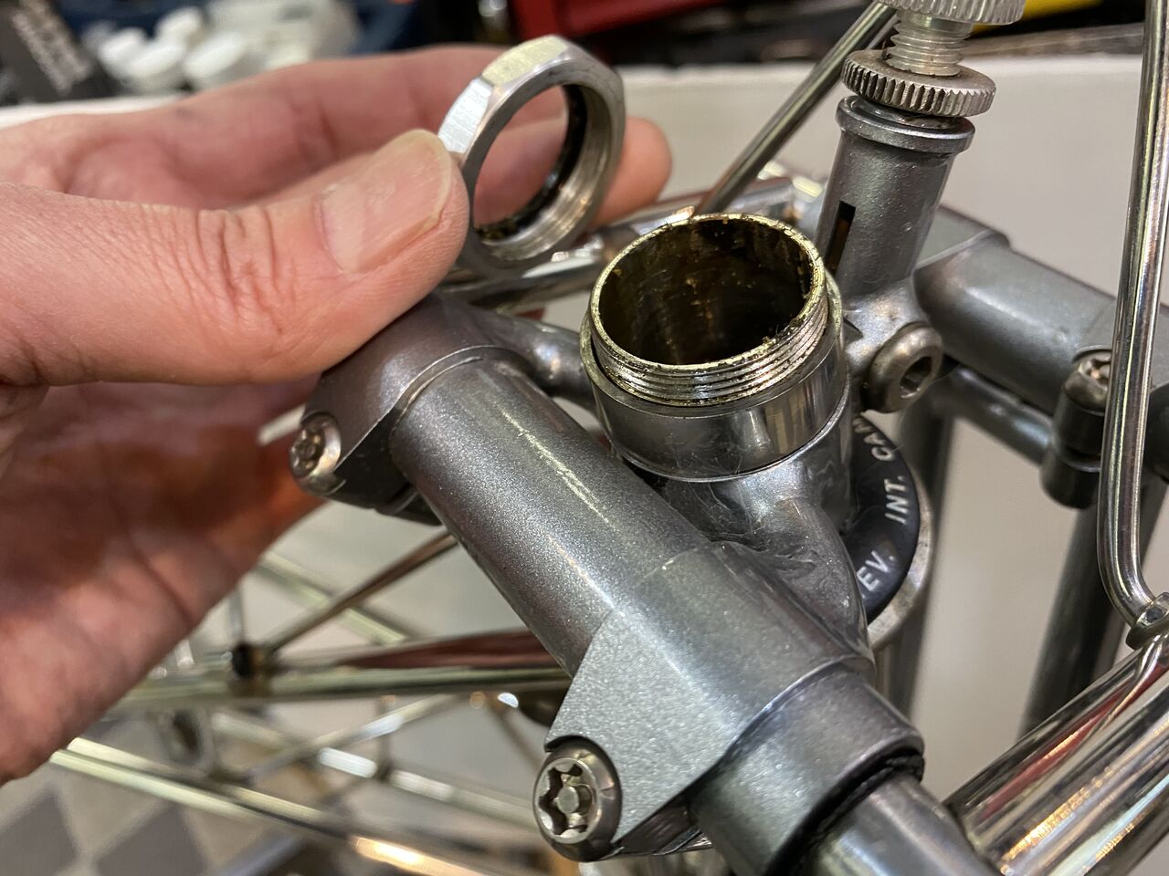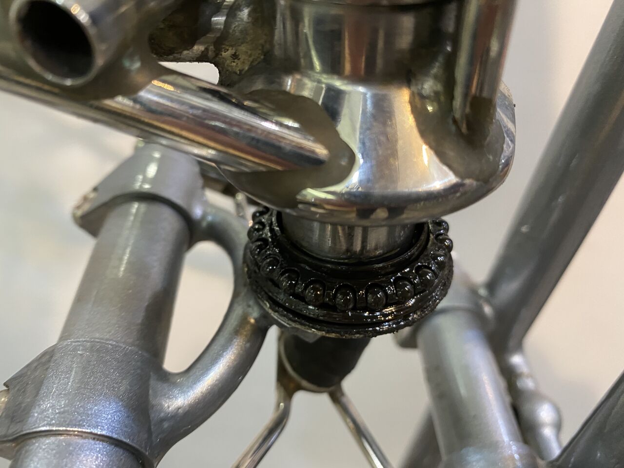 先ずは、昨日分解したパイロンコラムのヘッドパーツのクリーニング。