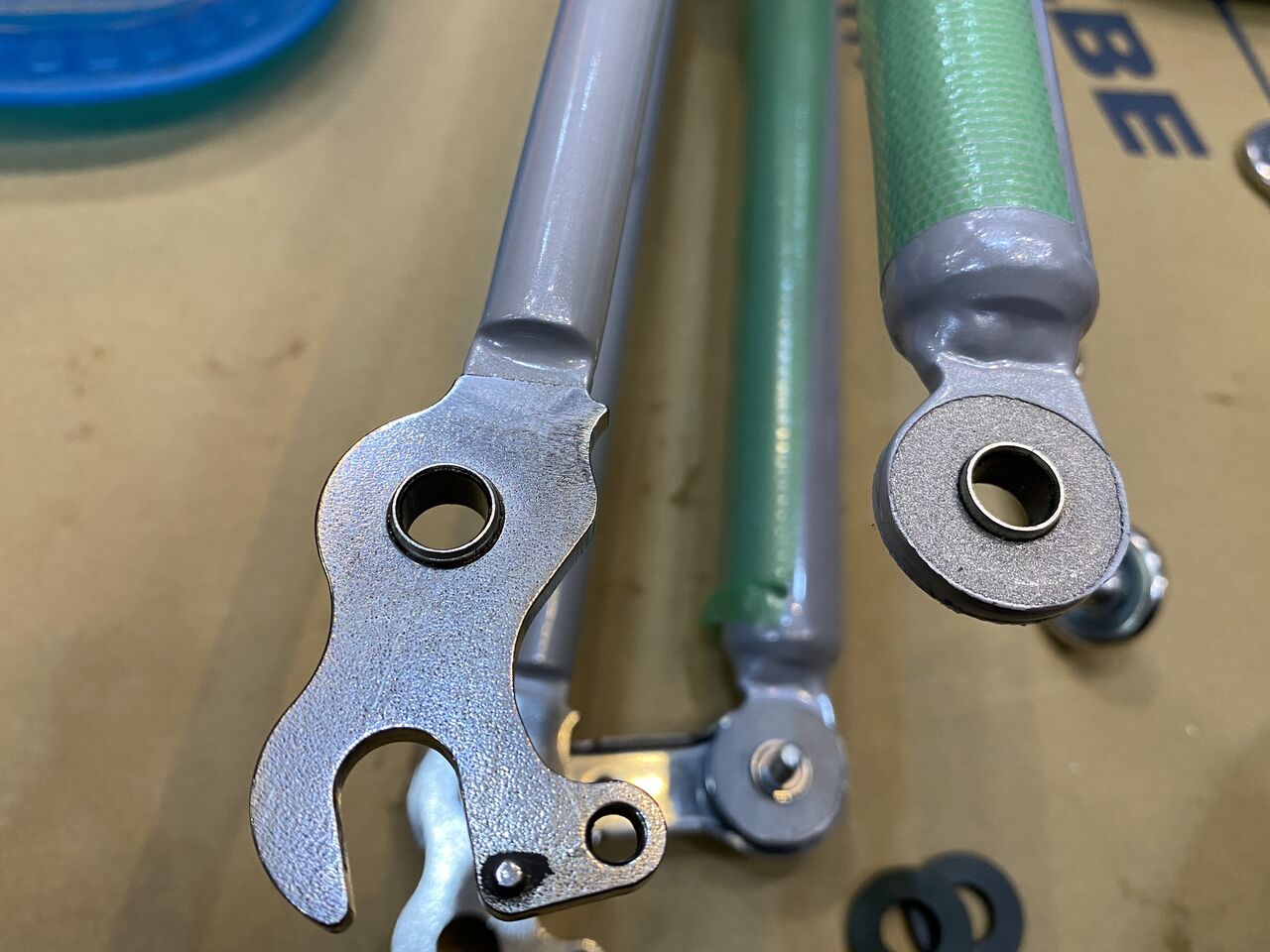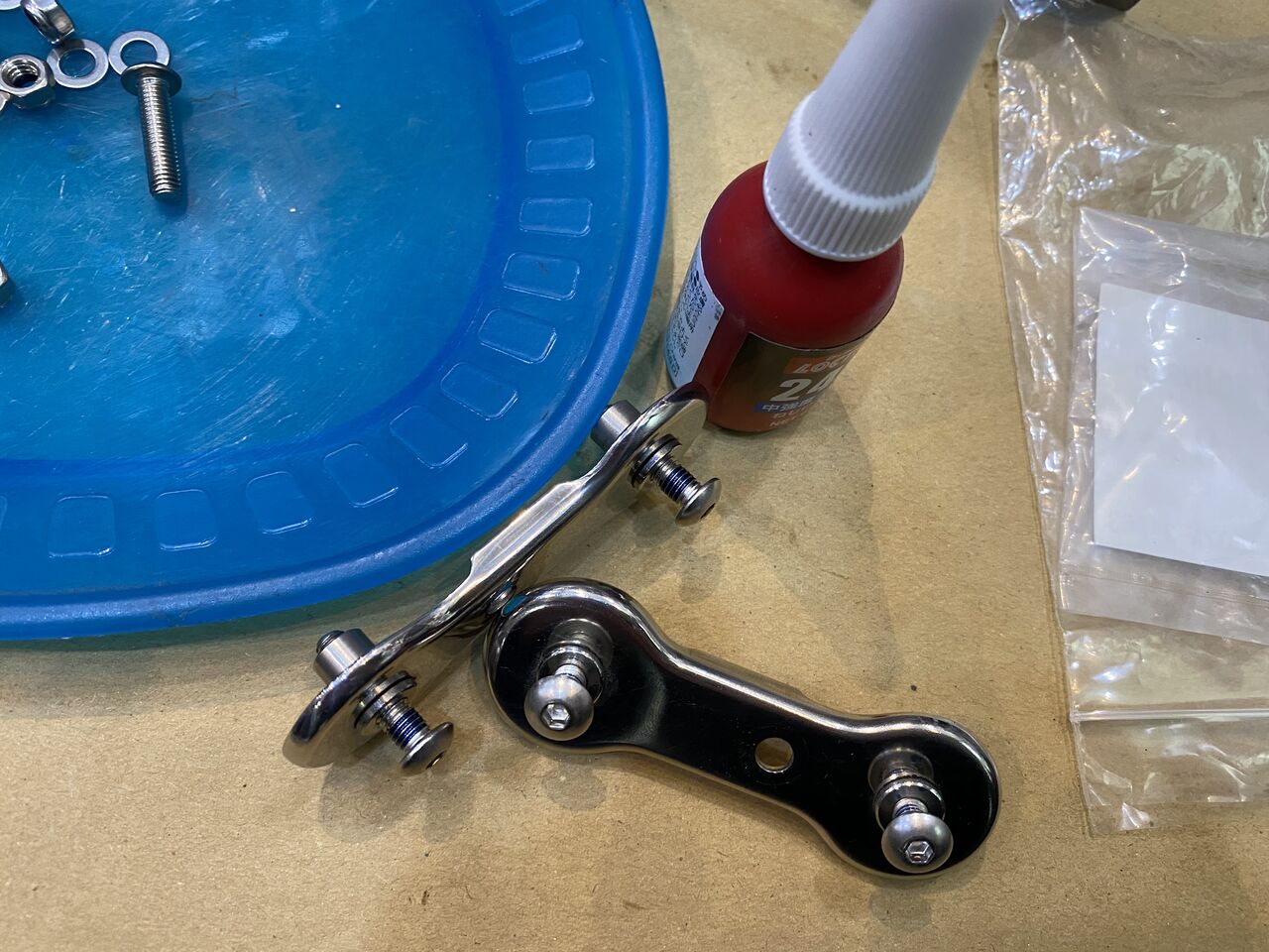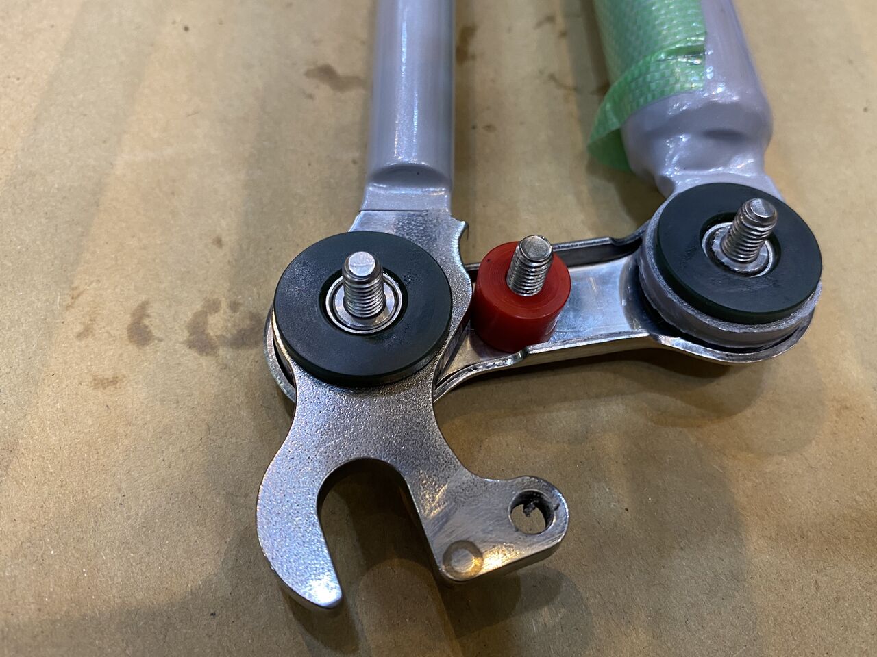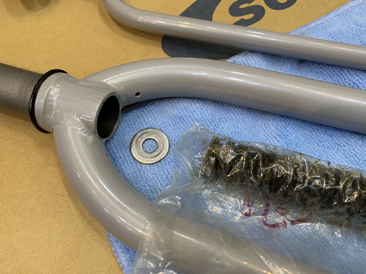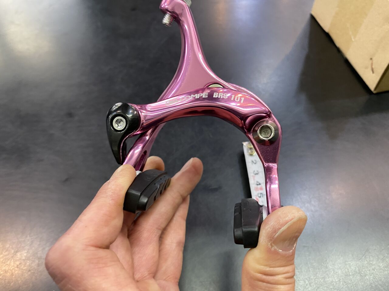 ちょっと不安に思ったブレーキキャリパーも何とかなりそうだ。どうしてもフルコンポで組みたいって方には救世主オフセットブレーキシューもあるしね。