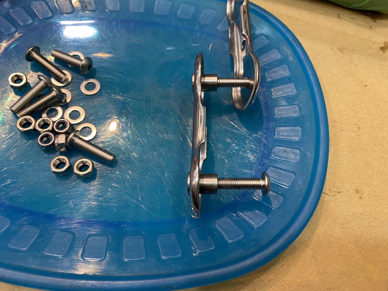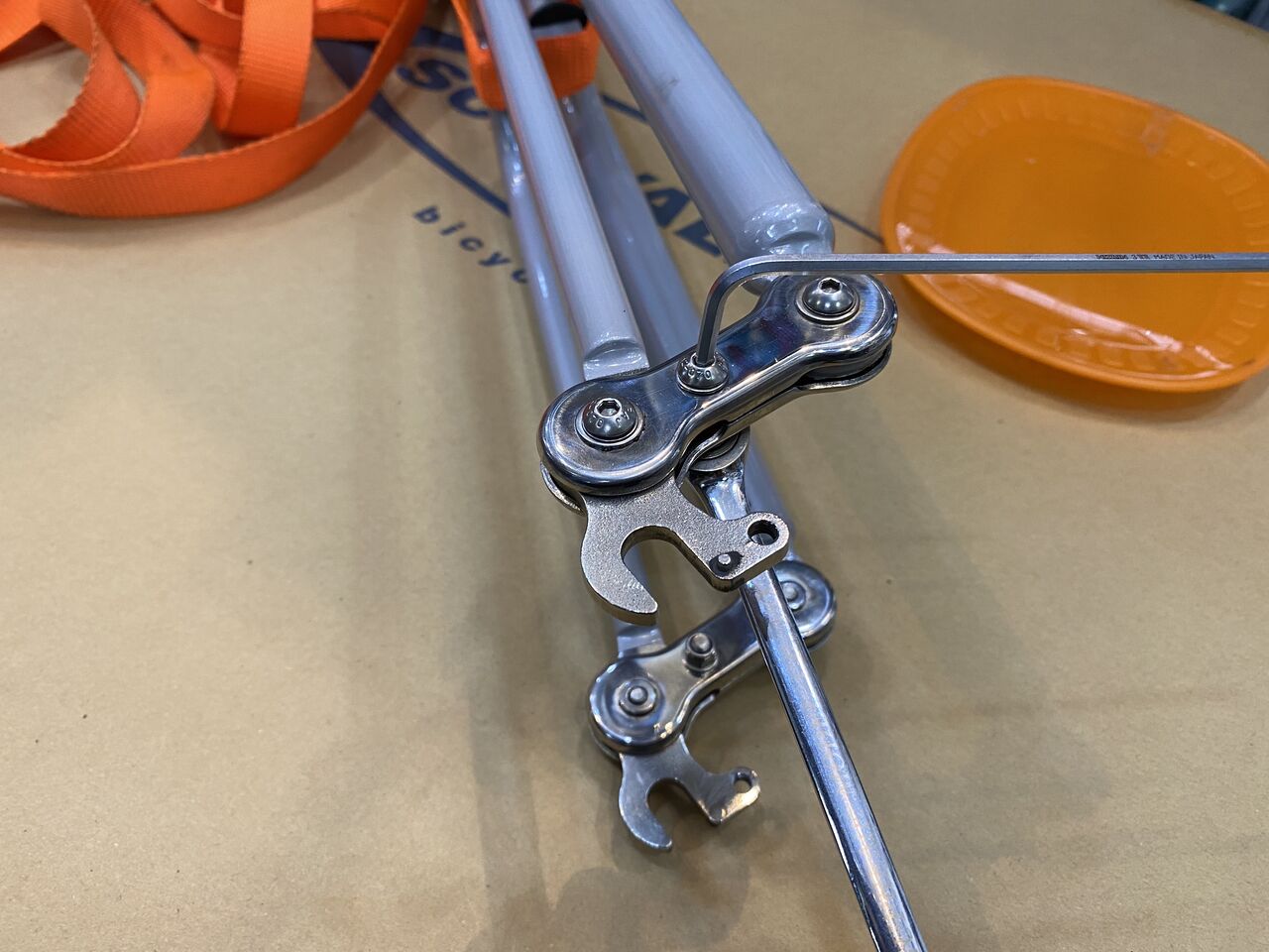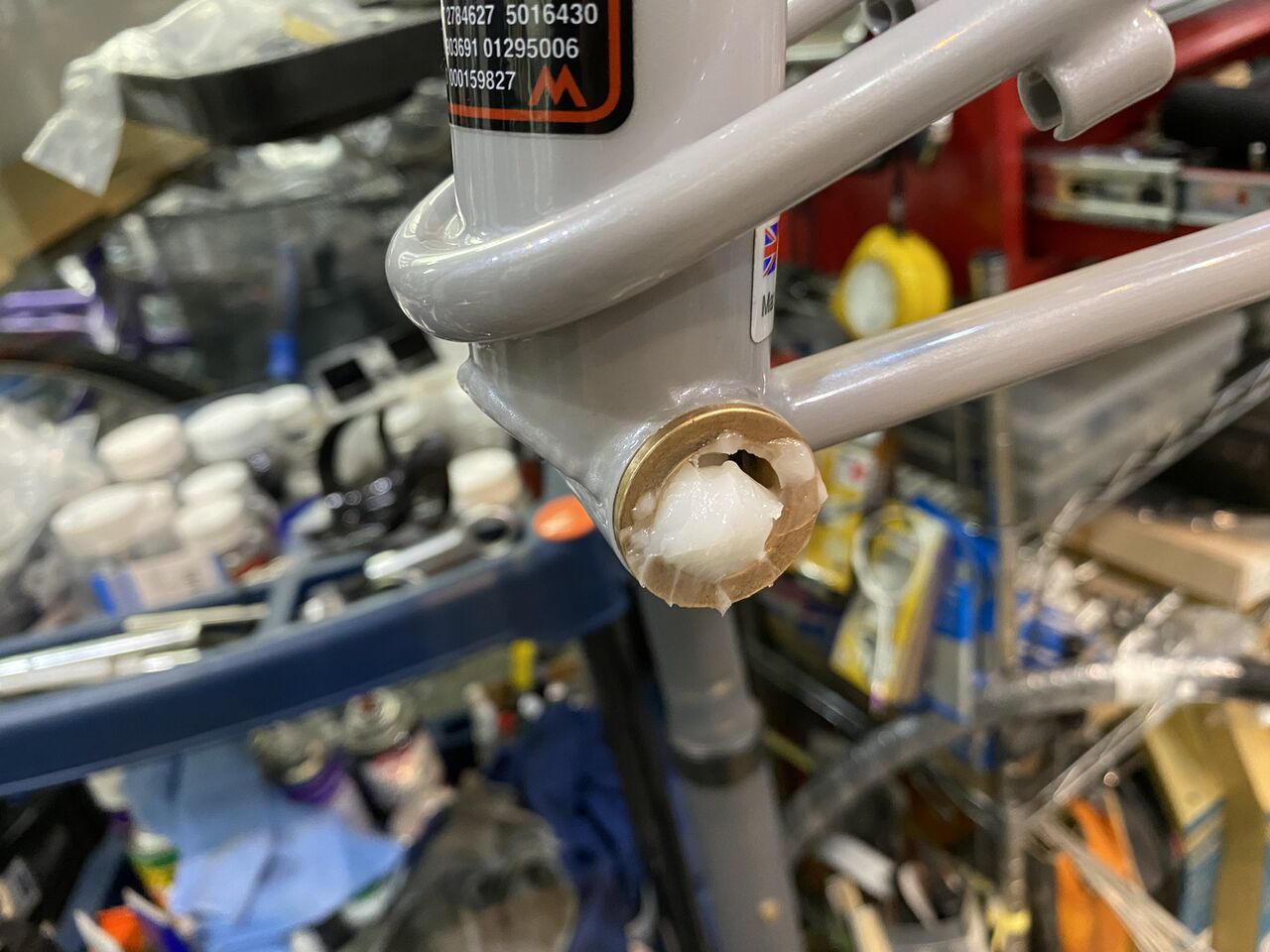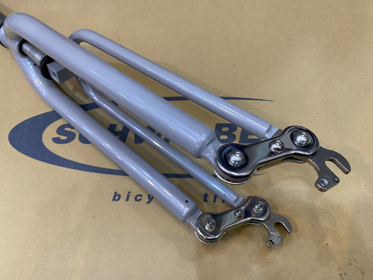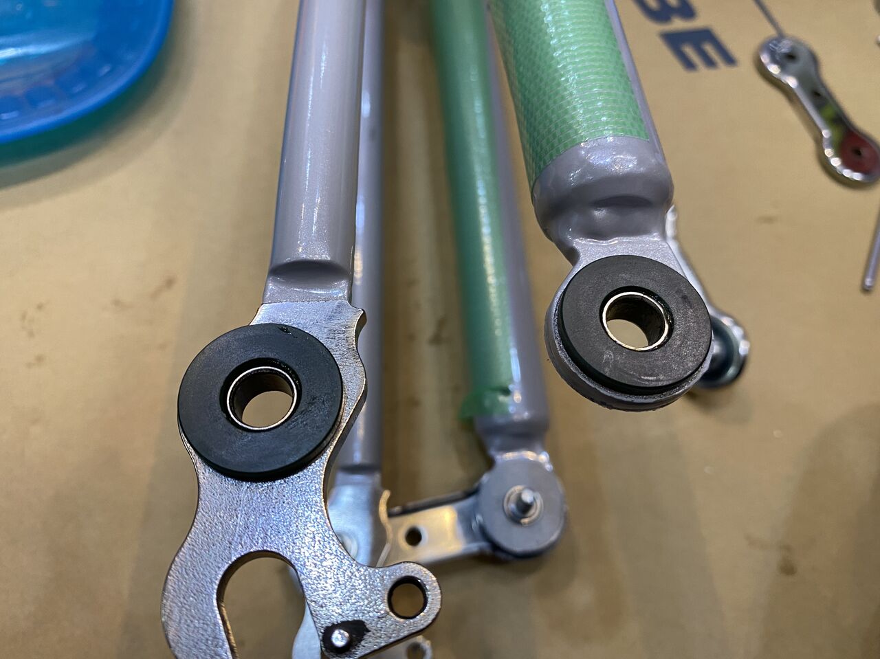 ちょっと不安に思ったブレーキキャリパーも何とかなりそうだ。どうしてもフルコンポで組みたいって方には救世主オフセットブレーキシューもあるしね。