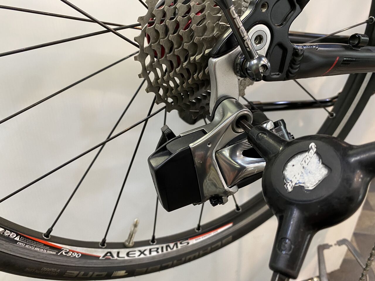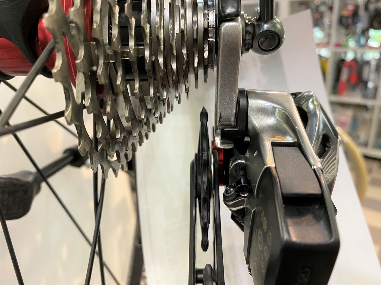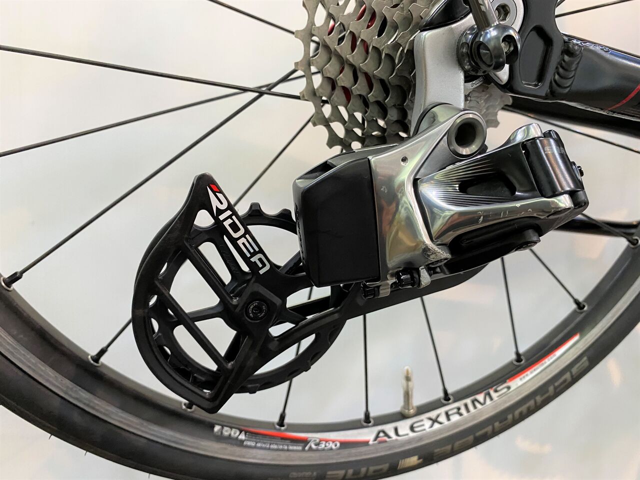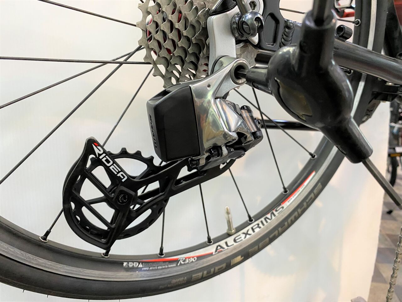 チェーン詰まりがなくなりかなり良い状態。クランキングがすこぶる軽いこの状態で止めておきたいが、SRAM RED リヤディレーラーの嫌な癖を知っているので予想しないバウンドなどでのチェーン落ちを恐れてもう1リンクチェーンをカットしチェーンテンションを上げてみた。