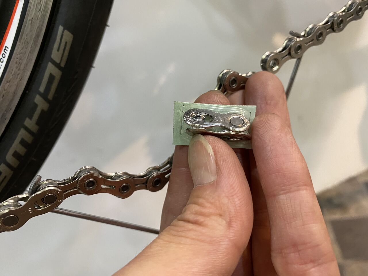 ここで B テンションを上げてしまうとまた変速性能が落ちるのでチェーンを1リンク(インナー、アウタープレート1ペアー)カットしてみる。