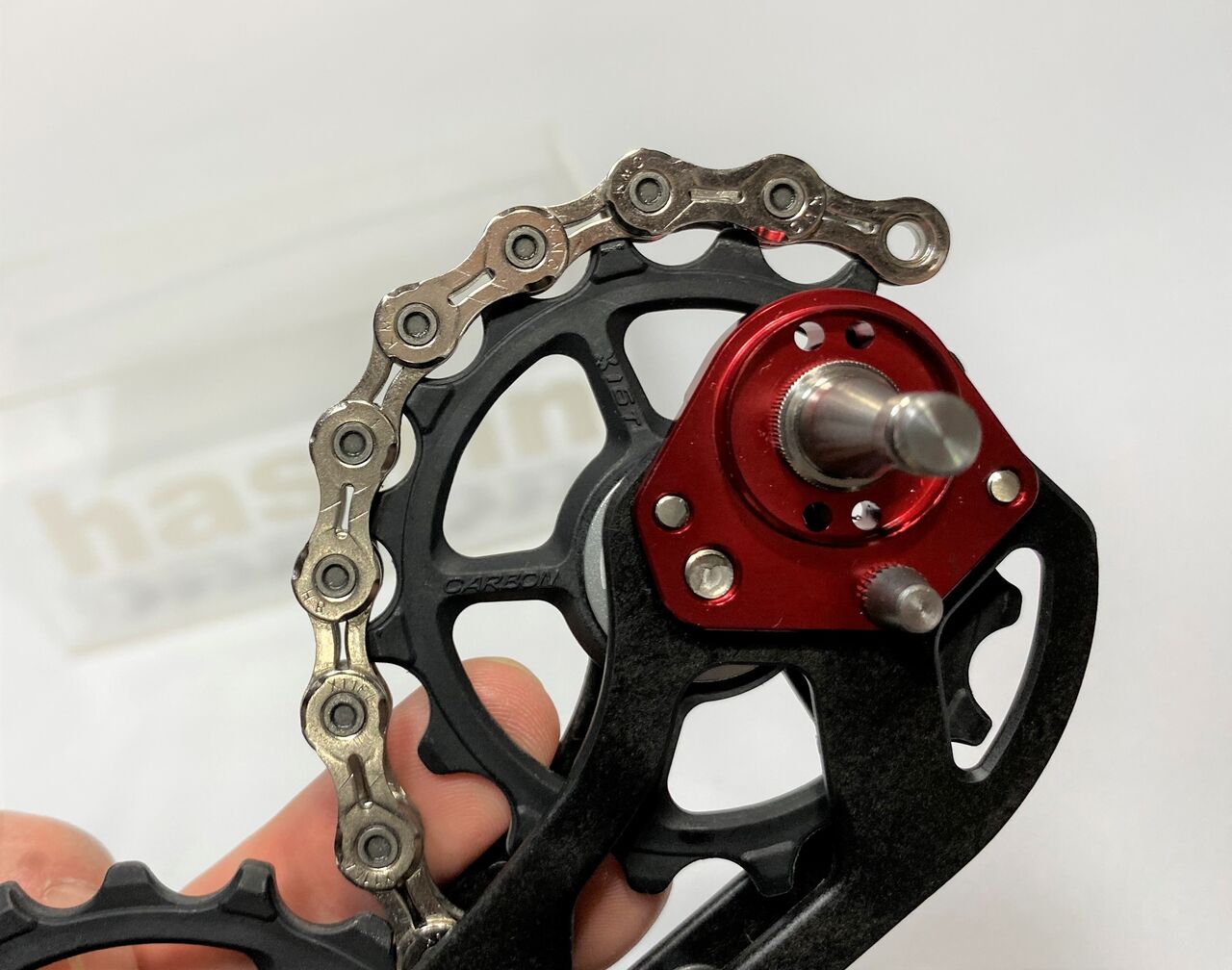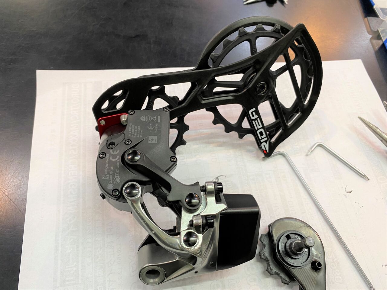 シフトアップ時に全く同期しなくなってしまった RIDEA ビックプーリー。そんなもんが市場に出回るわけがない。これからじわりじわりと煮詰めていきます。何が何でもこんなにひどい訳が無い。先ずは、基本的にディレーラーハンガーの曲がりを疑ってみる。