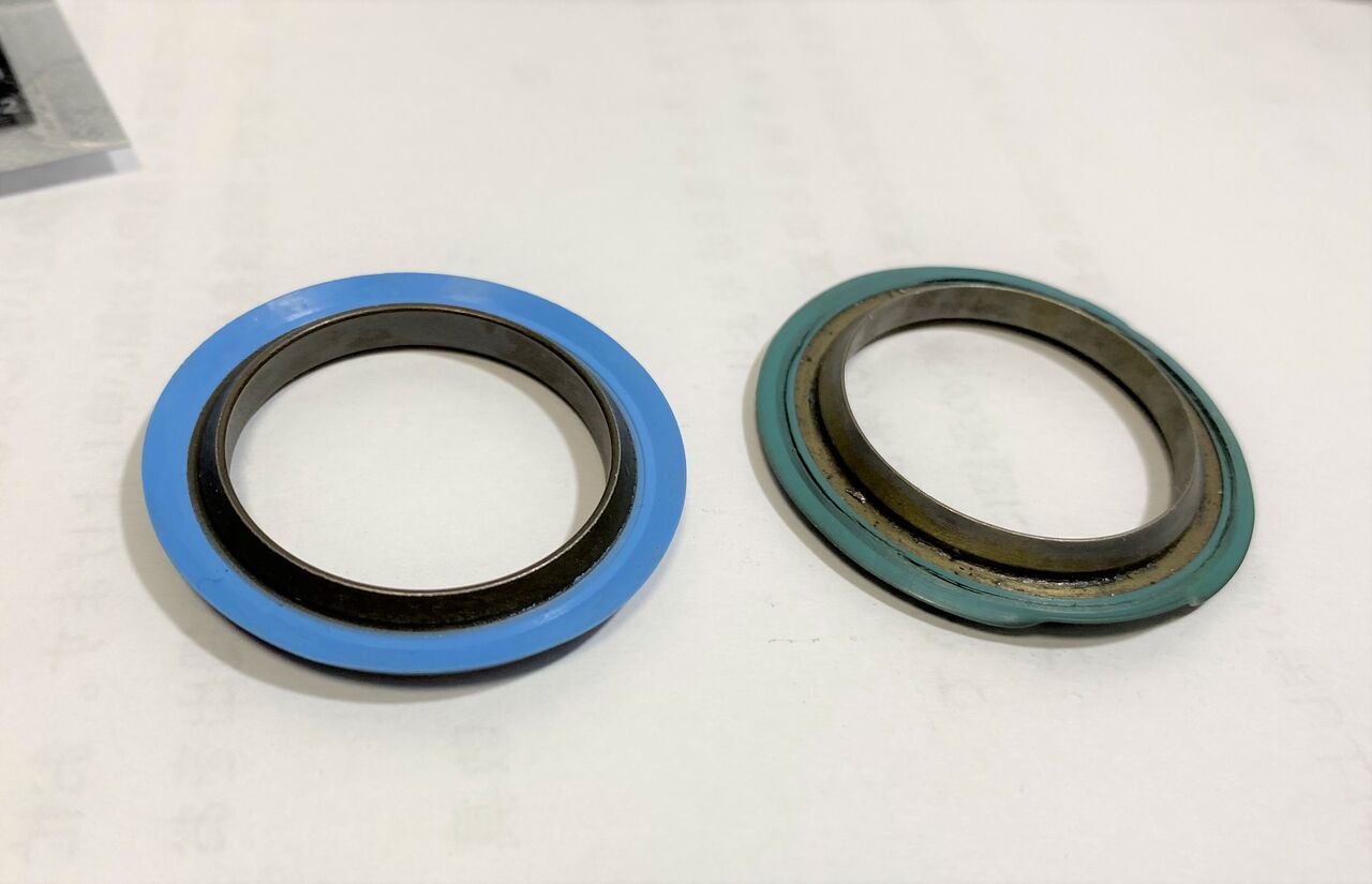 古い物と比べ平らな部分が全てラバーで覆われてる。(叩き込んだ際に捲れた可能性もあり)となるとテーパー部分で圧入しないと新品のオイルシールがやられる。