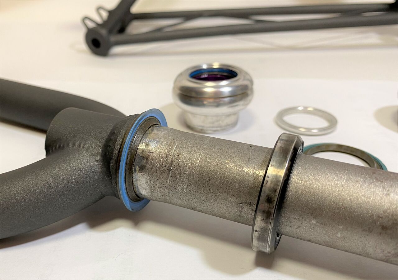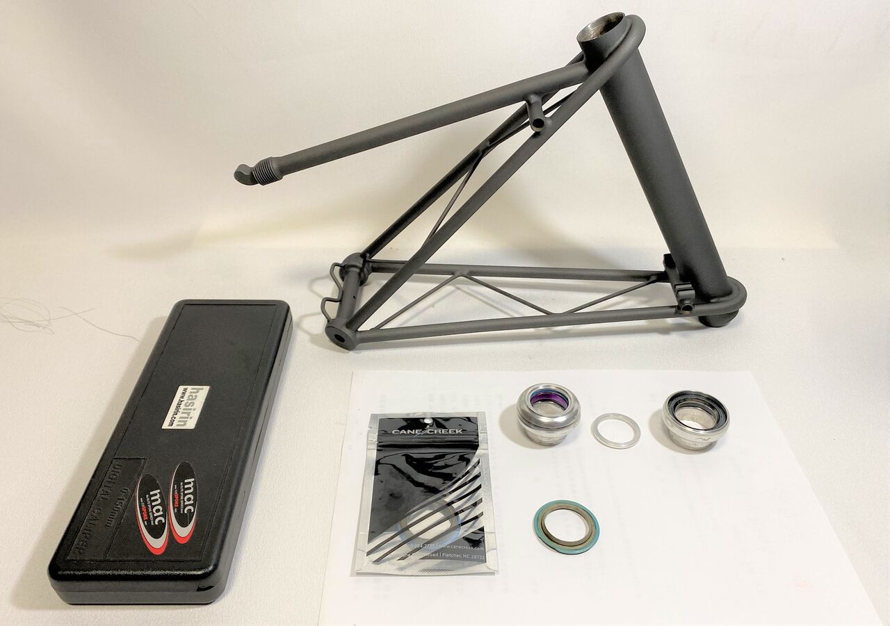 セラコートしたフレームのフロントセクションから組んで行きます。先ずは、取り寄せたKANE CREEK のリペアパーツから。