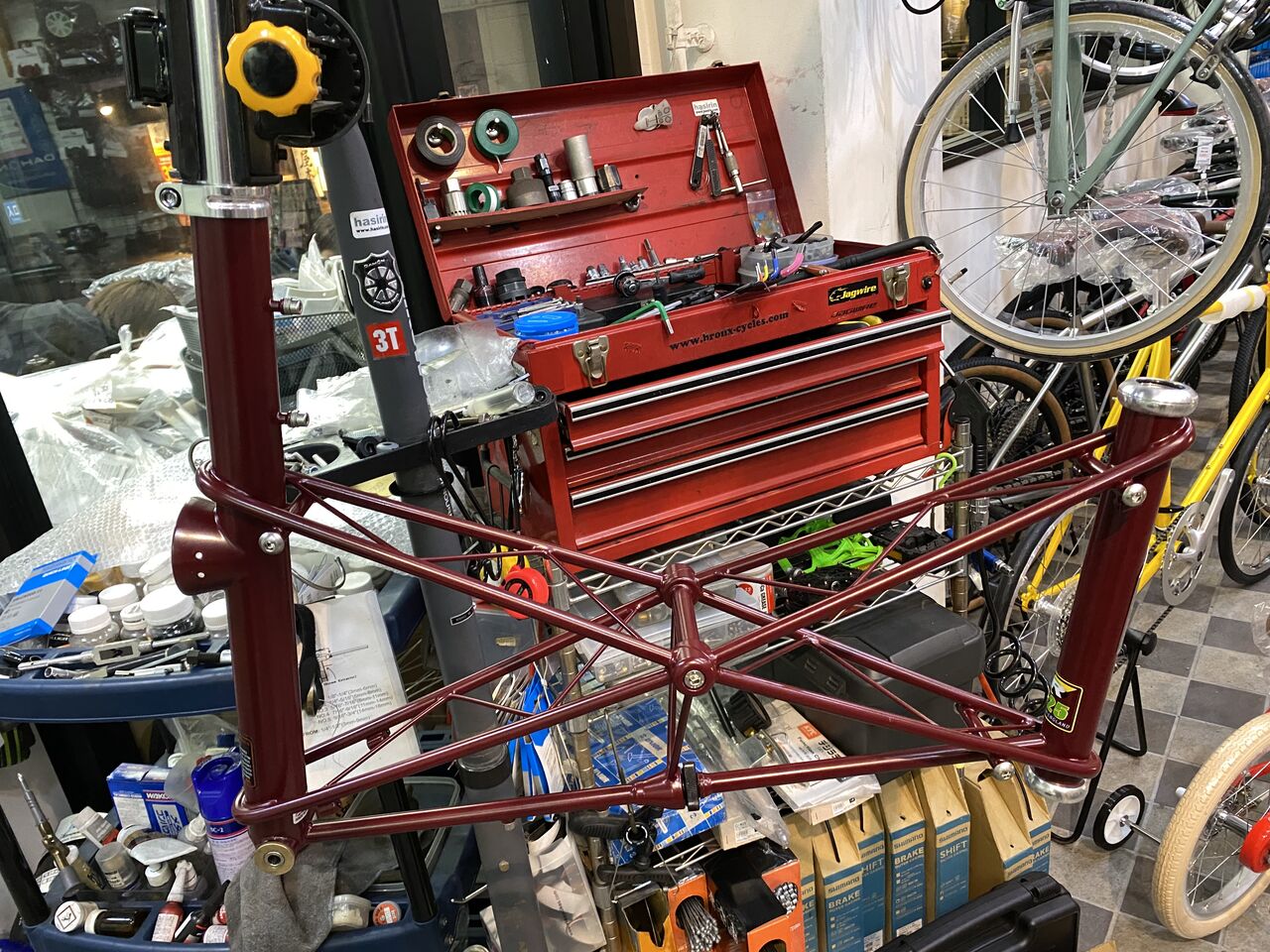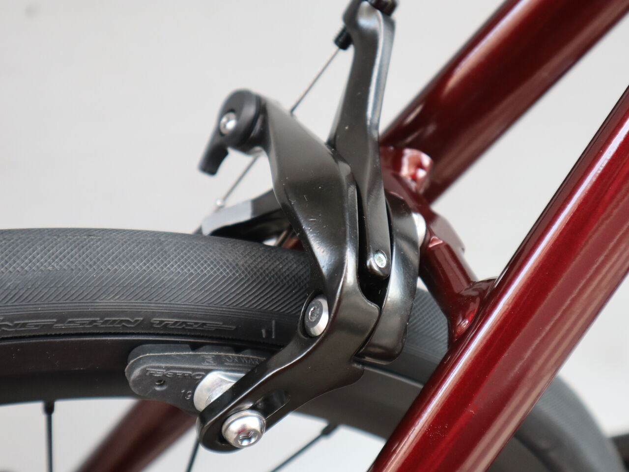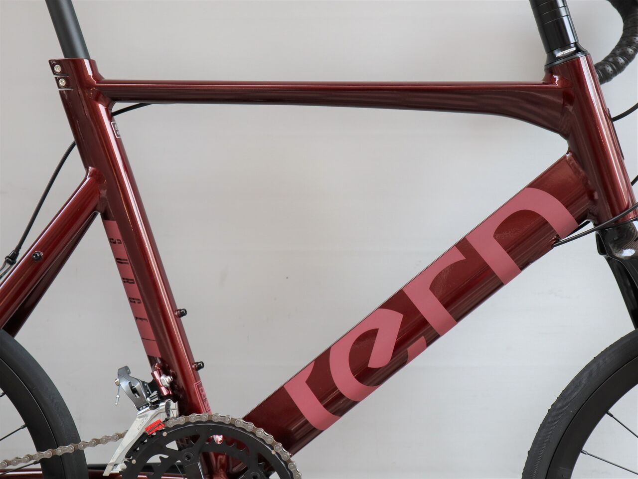 細身のクロモリながら直線と曲線を融合させた優しいデザインフレームとなっています。
