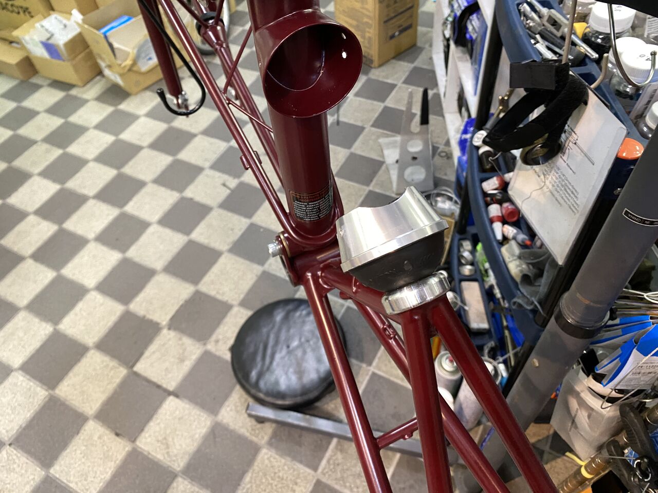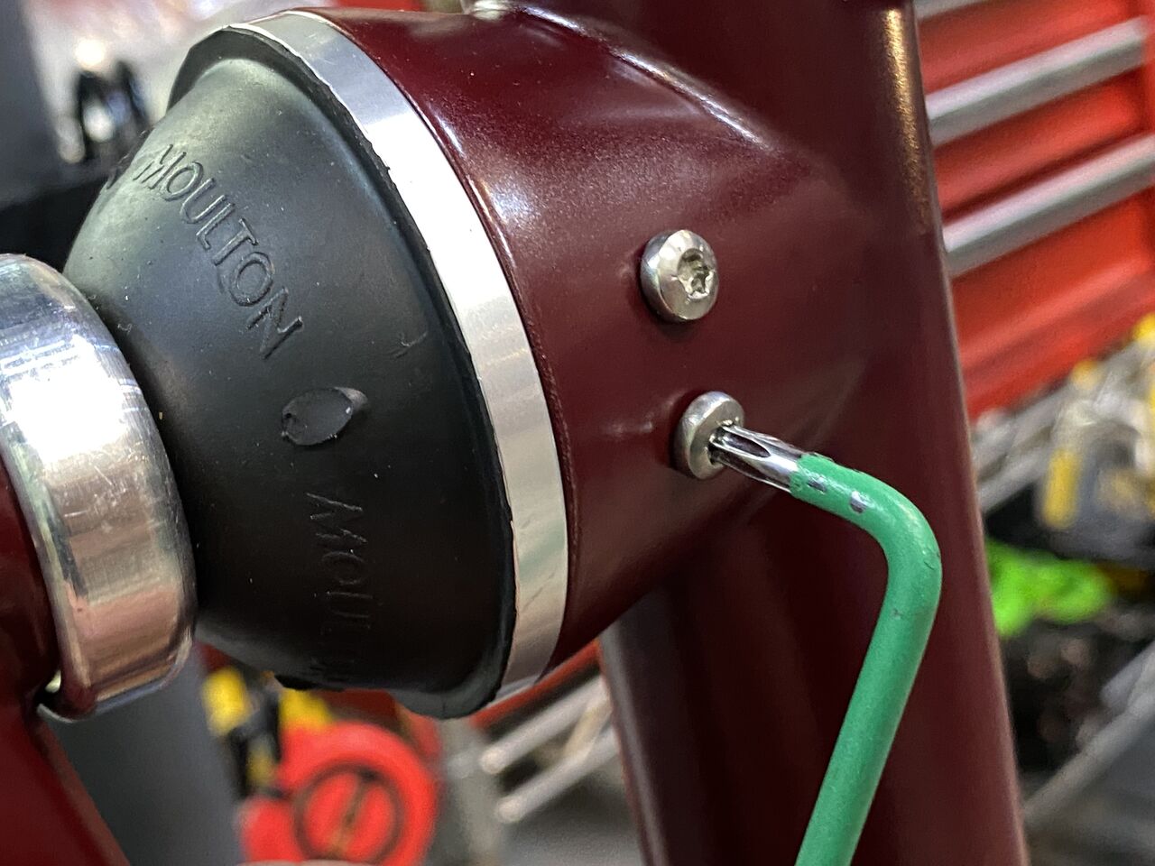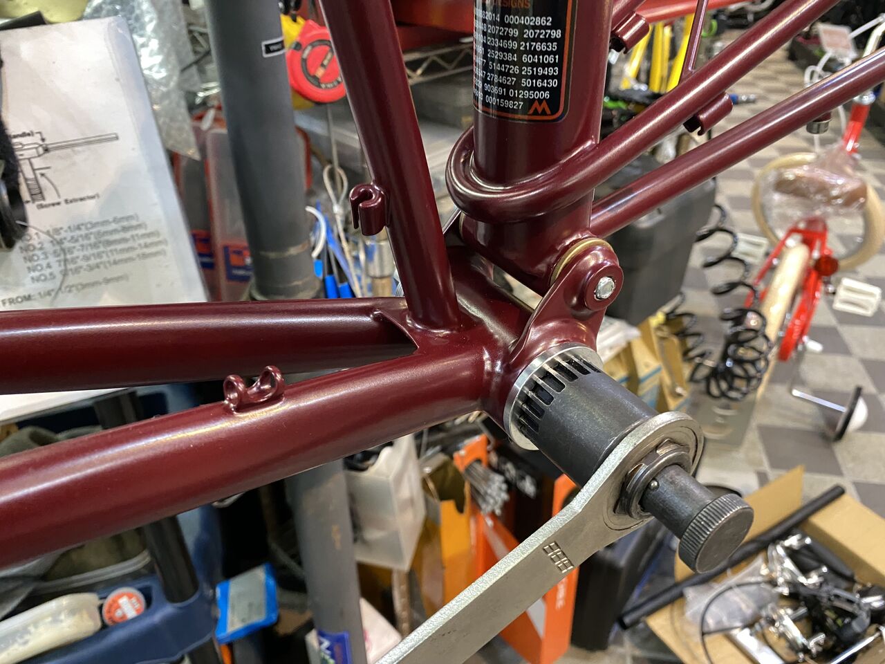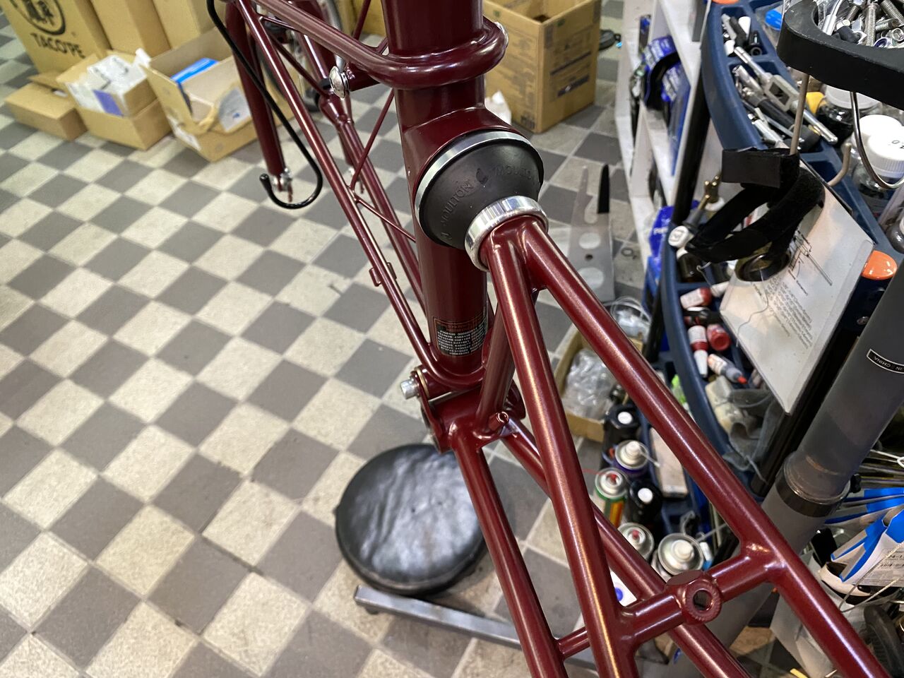 細身のクロモリながら直線と曲線を融合させた優しいデザインフレームとなっています。