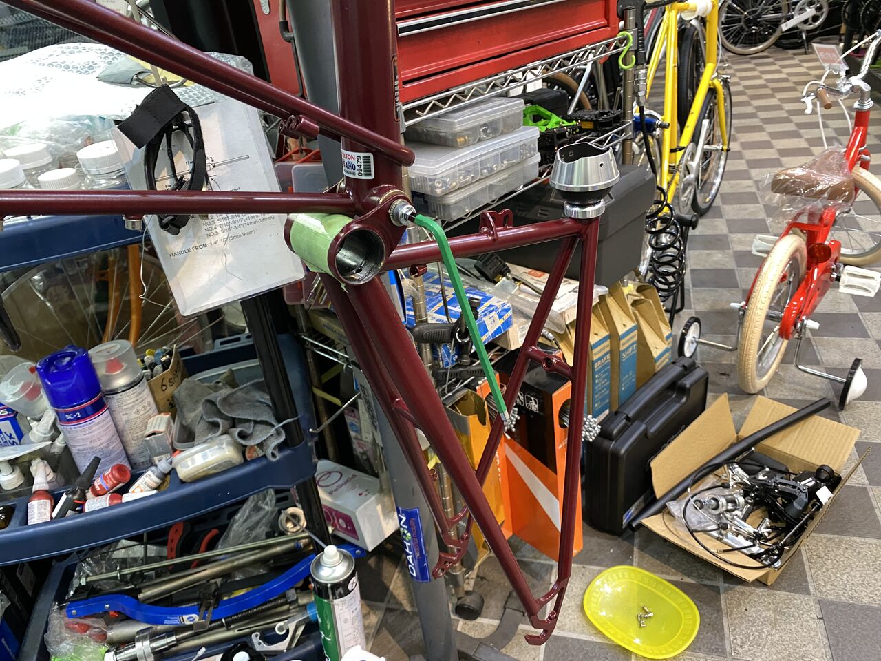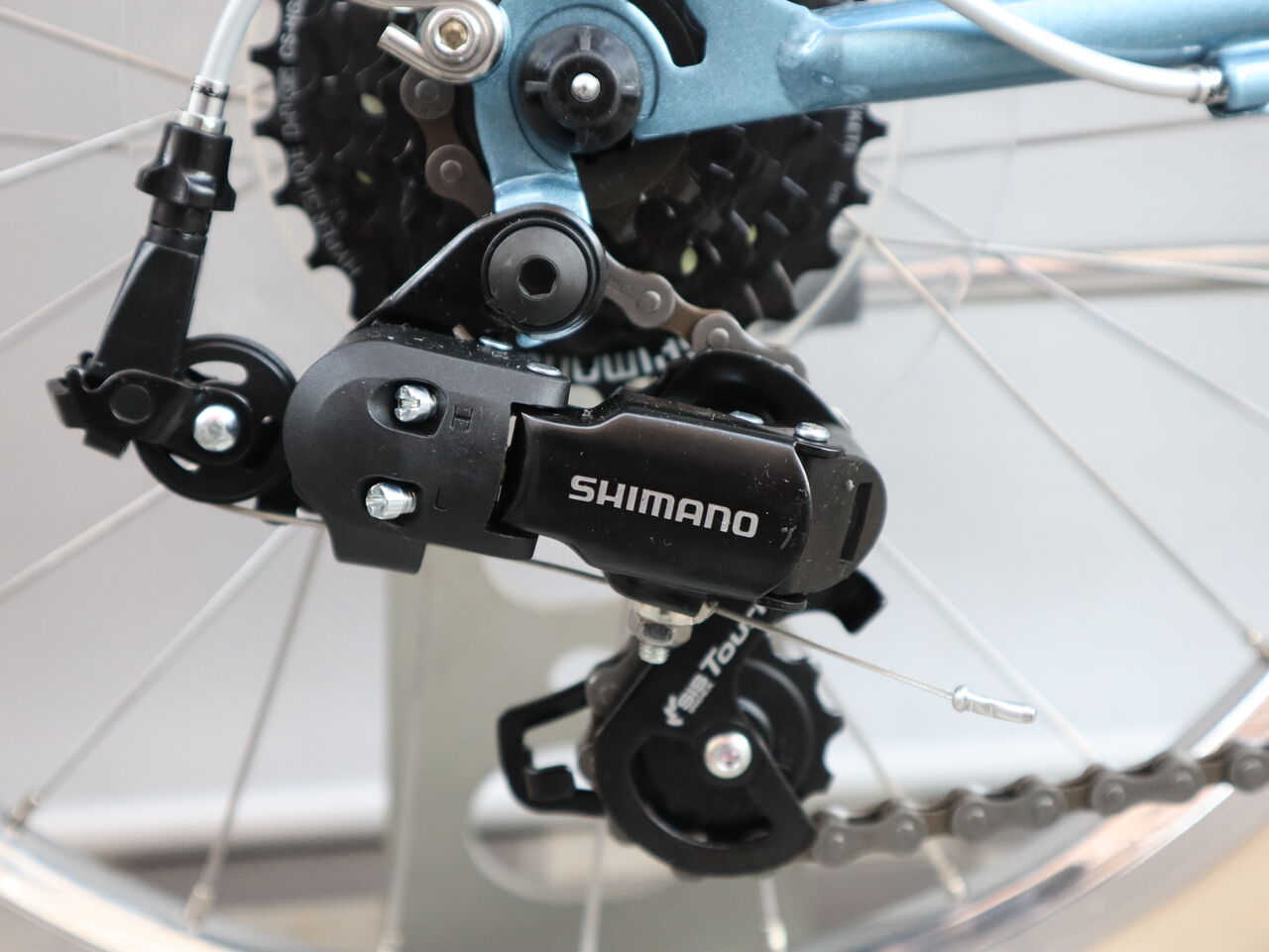 リヤディレーラーは、Shimano Tourney の7 Speed 。