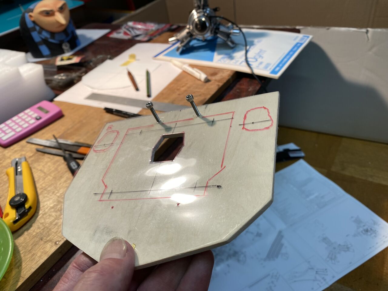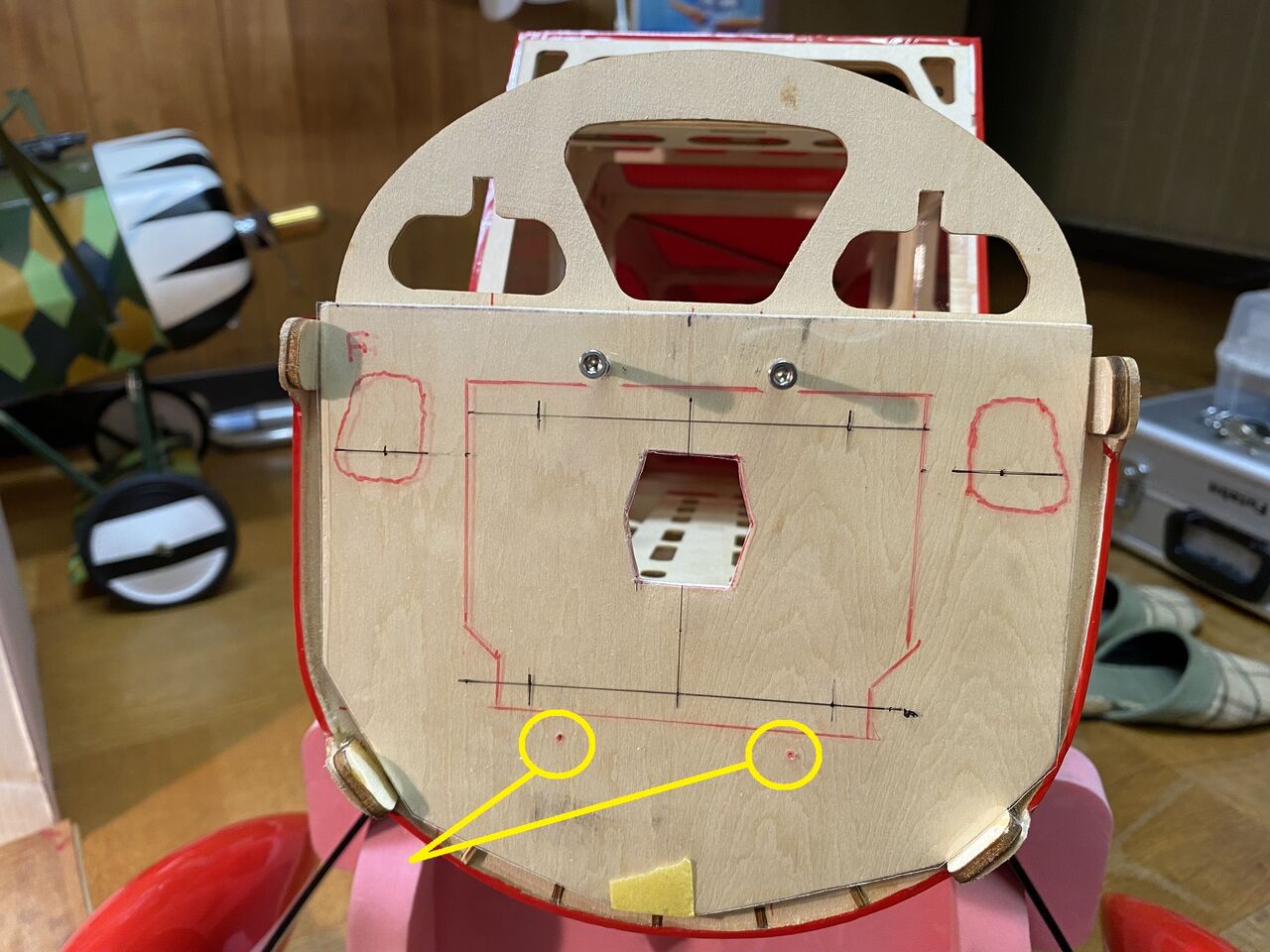 これに見えなくなった本体の情報を写し取ります。穴あけ位置がぴったり合うって寸法。段々先が見えてきたぞ!