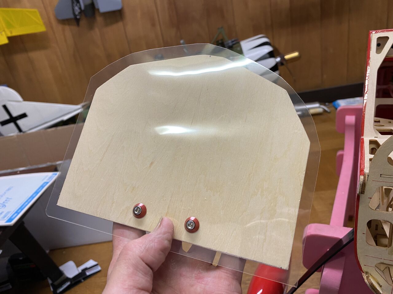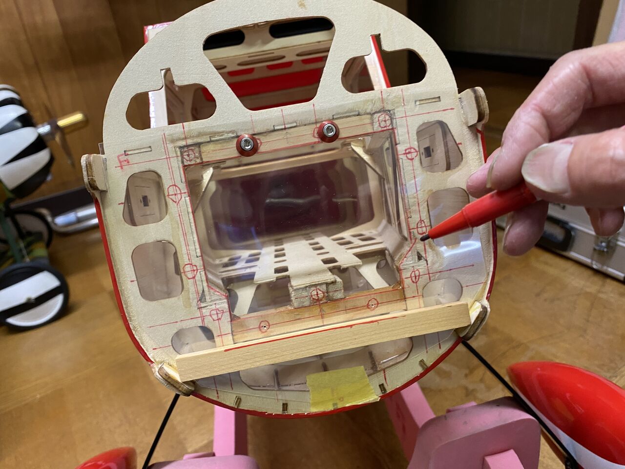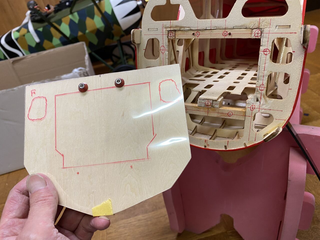 4mm シナベニアから新たに防火壁を切り出した。水上機としての運行を考慮し、ほぼ全面を塞ぐ。