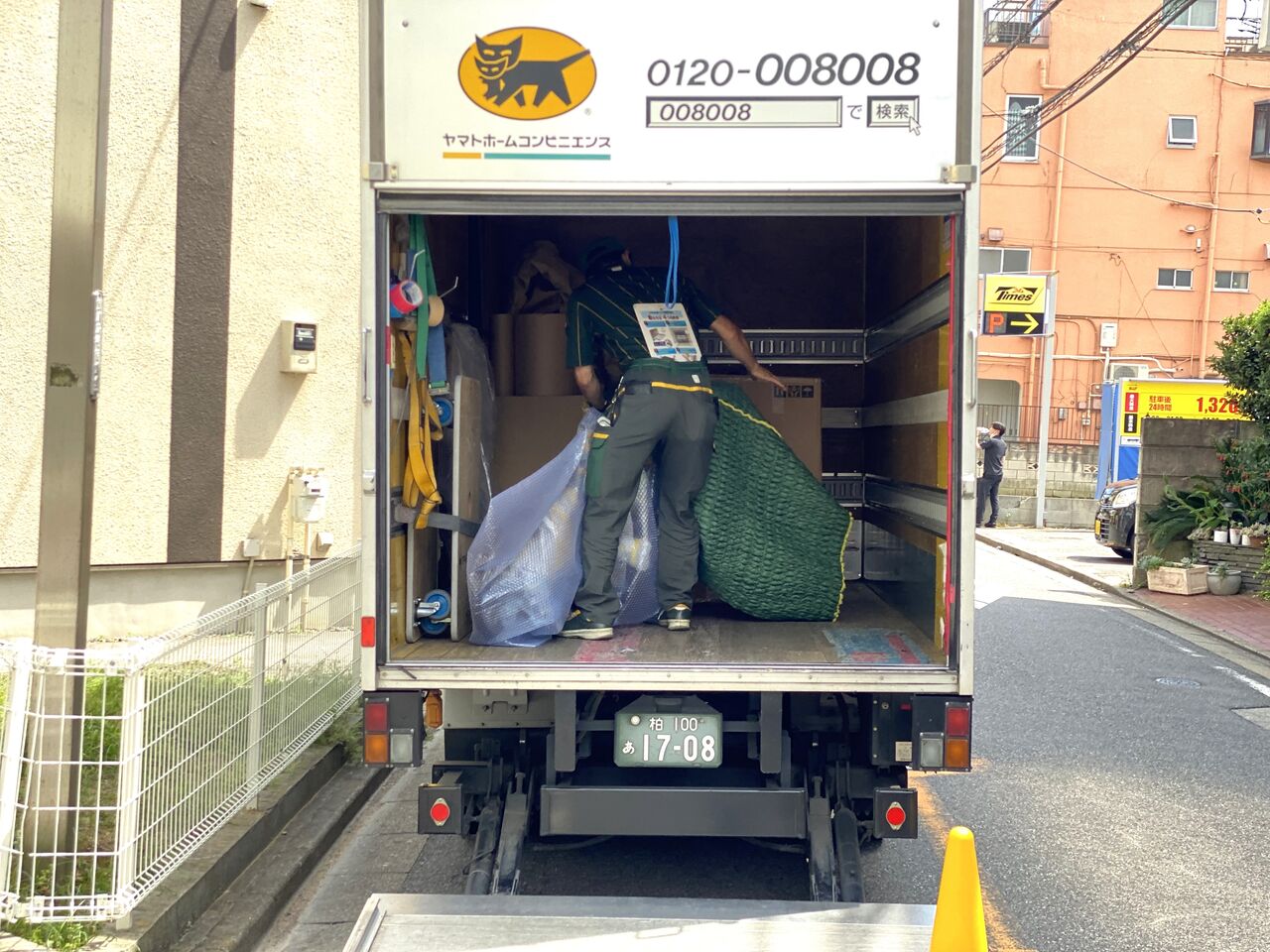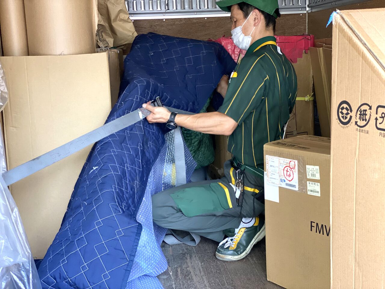 電話番号は、0120-008008。荷台に積み込んだ後よく引越で使うキルティングの袋でくるんでくれました。