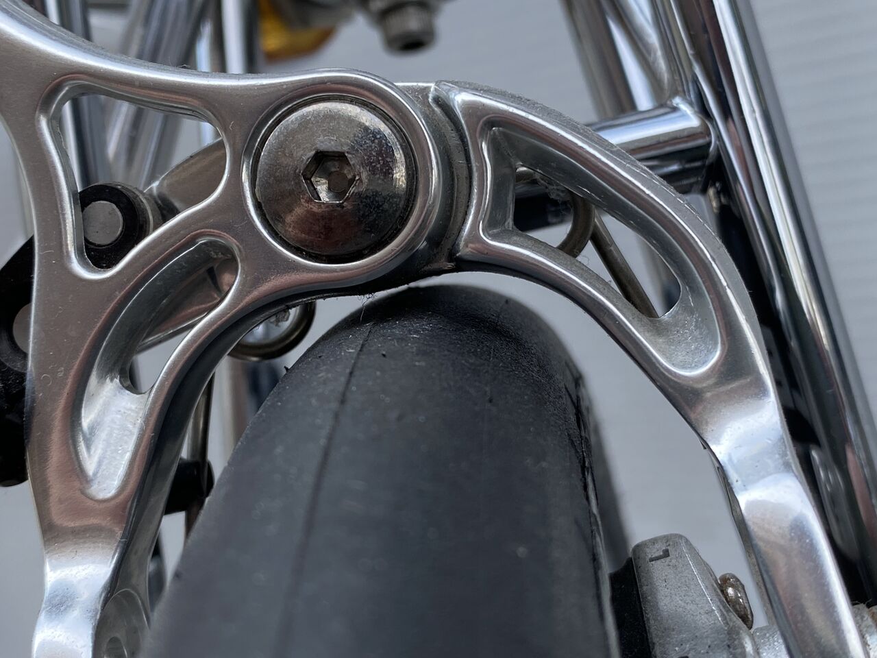 昨年の12月にベトナムへと旅立った KIMORI COLOSSUS HR 6号機フレームセットが、ようやく組み上がったそうです。ですが DURA-ACE フルコンポでのアッセンブリーでフロントブレーキがタイヤに干渉するとのメールがきました。タイヤは、何時もの SCHWALBE KOJAK 17インチ(32-369)と同じものの新品だという。一体何が?