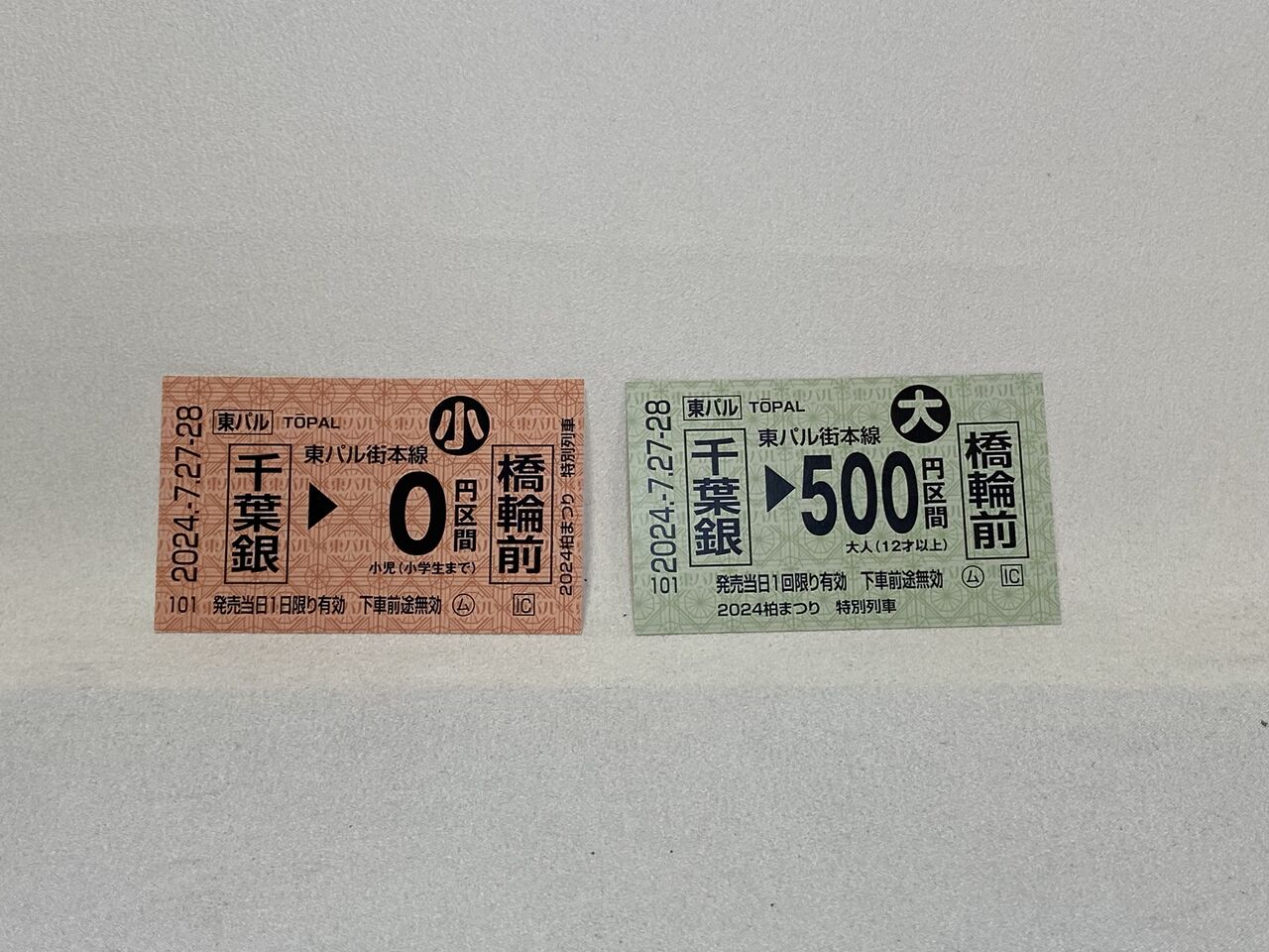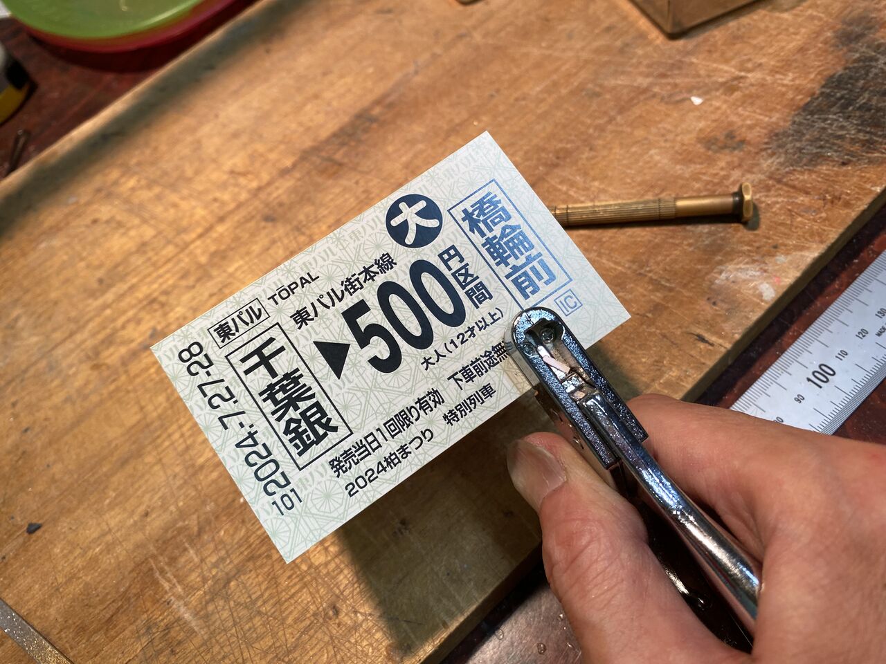 製作した切符。千葉銀発の橋輪前まで子供0円大人500円也。