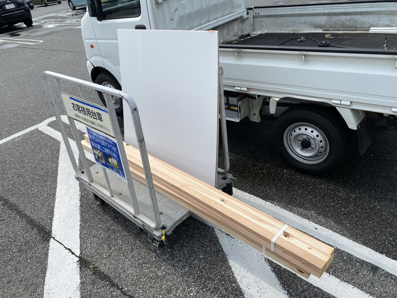 材料を購入して駅の看板を作ります。