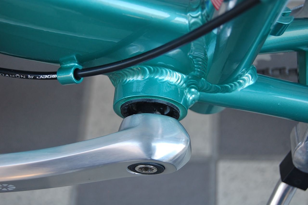 ボトムブラッケットは、カラーとの関係上レトログリーンは、シルバーのBB-RS500をチタン、パールは、ブラックのBB-R9100 を装着しています。