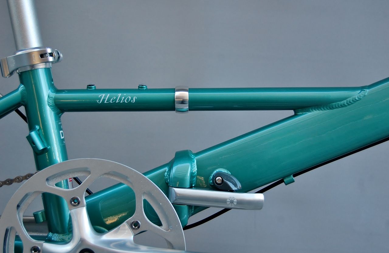 2017年シングルスピード仕様で復活したヘリオス。パール、チタンに加えオーソライズドディーラー限定カラーのレトログリーンの3色展開。このヘリオスに Shimano 105 コンポーネントを搭載し 22 Speed とした Helios 22 Shimano 105 橋輪スペシャルを限定販売!