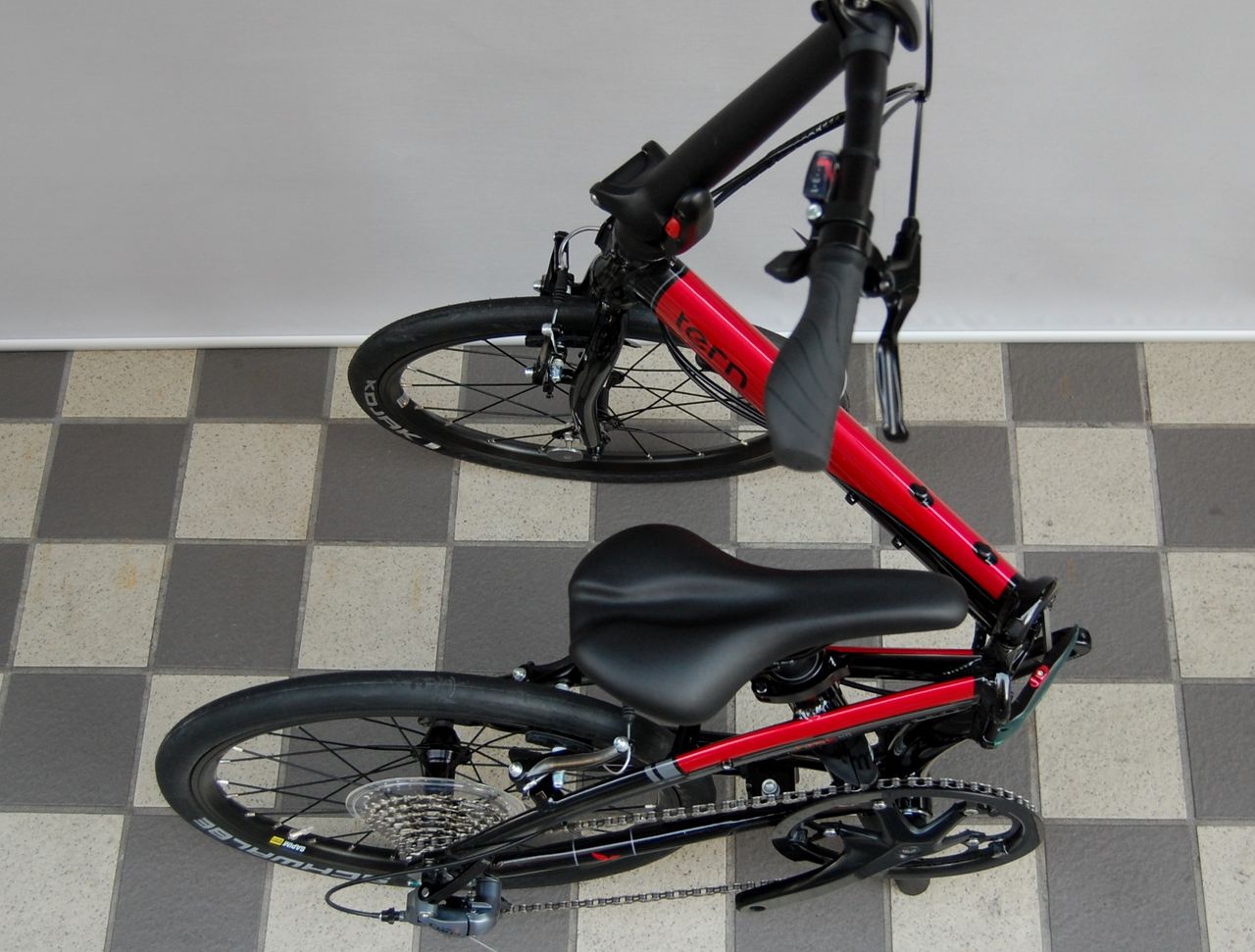 これがスタンダードな畳み方。キャリパーブレーキの Vrege X18 は、必ずこの方法で畳んで下さいね。