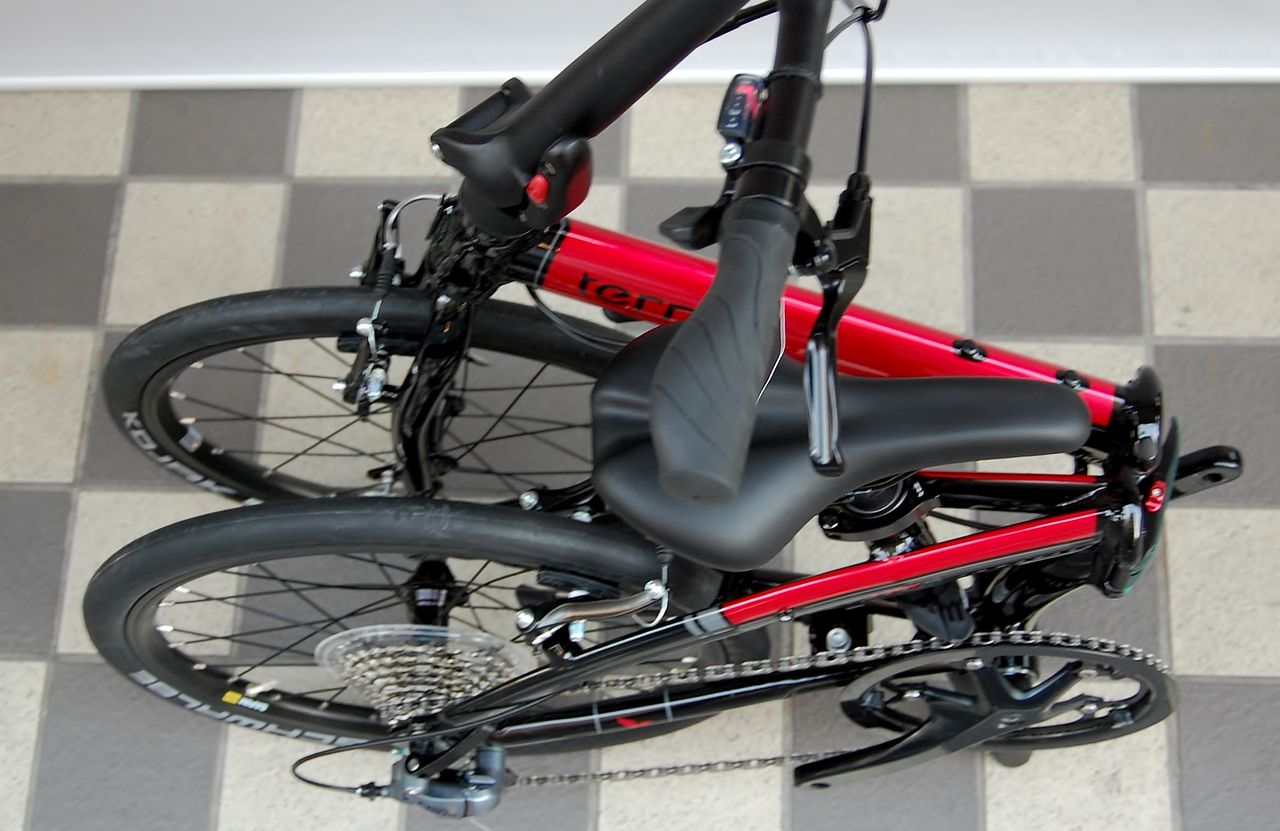 これで折り畳むとDAHON よりワイズが小さくなるってのが tern のギミック。